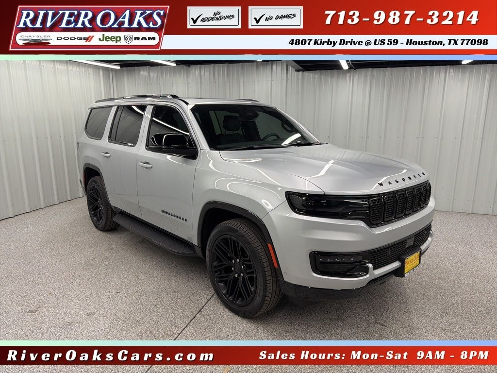 Let the team at River Oaks CDJR introduce you to an entirely new kind of car-buying experience. If you're looking for a deal, this is it. This vehicle is priced below market for immediate sale. No add-ons. No Surprises. Just honest deals. Sin cargos ocultos. Sin sopresas. Solo ofertas honestas. No Pague Mas. Hablamos Espanol! This 2025 Jeep Wagoneer Series II in Silver Zynith comes with the following features: 3.0L I6 8-Speed Automatic 4WD Carbide Appearance Package, Premium Group I (3 Panel Sunroof, Adjustable Roof Rail Crossbars, Cargo Cover, and Reversible Carpet/Vinyl Cargo Mat), Quick Order Package 25F Carbide (Black Exterior Accents and Wheels: 20" x 9" Gloss Black Painted Aluminum), 10 Speakers, 118 MPH Maximum Speed Calibration, 3.55 Rear Axle Ratio, 3rd row seats: bench, 4-Wheel Disc Brakes, ABS brakes, Air Conditioning, Alloy wheels, AM/FM radio: SiriusXM with 360L, Anti-whiplash front head restraints, Apple CarPlay/Android Auto, Audio memory, Auto Adjust In Reverse Exterior Mirrors, Auto-dimming door mirrors, Auto-Dimming Exterior Driver Mirror, Auto-dimming Rear-View mirror, Auto-leveling suspension, Automatic temperature control, Brake assist, Bumpers: body-color, Compass, Delay-off headlights, Driver door bin, Driver vanity mirror, Driver's Seat Mounted Armrest, Dual front impact airbags, Dual front side impact airbags, Electronic Stability Control, Emergency communication system: Jeep Connect, Exterior Mirrors Approach Lamps, Exterior Mirrors w/Memory, Exterior Mirrors w/Supplemental Signals, Four wheel independent suspension, Front anti-roll bar, Front Bucket Seats, Front Center Armrest w/Storage, Front dual zone A/C, Front fog lights, Front reading lights, Fully automatic headlights, Garage door transmitter, Genuine wood console insert, Genuine wood dashboard insert, Genuine wood door panel insert, Heated door mirrors, Heated Exterior Mirrors, Heated front seats, Heated rear seats, Heated steering wheel, Illuminated entry, Knee airbag, Leather Trimmed Bucket Seats, Low tire pressure warning, Memory seat, Navigation System, Normal Duty Suspension, Occupant sensing airbag, Outside temperature display, Overhead airbag, Overhead console, Panic alarm, ParkView Rear Back-Up Camera, Passenger door bin, Passenger seat mounted armrest, Passenger vanity mirror, Power adjustable front head restraints, Power door mirrors, Power driver seat, Power Liftgate, Power passenger seat, Power steering, Power windows, Radio data system, Radio: Uconnect 5 Nav w/10.1" Display, Rain sensing wipers, Rear air conditioning, Rear anti-roll bar, Rear dual zone A/C, Rear reading lights, Rear seat center armrest, Rear window defroster, Rear window wiper, Reclining 3rd row seat, Remote keyless entry, Security system, Speed control, Speed-sensing steering, Speed-Sensitive Wipers, Split folding rear seat, Steering wheel memory, Steering wheel mounted audio controls, Tachometer, Telescoping steering wheel, Tilt steering wheel, Traction control, Trip computer, Turn signal indicator mirrors, Variably intermittent wipers, Ventilated front seats, Voltmeter, Wheels: 20" x 9.0" Premium 2 Aluminum, and Wheels: 22" x 9.0" Painted Gloss Black.