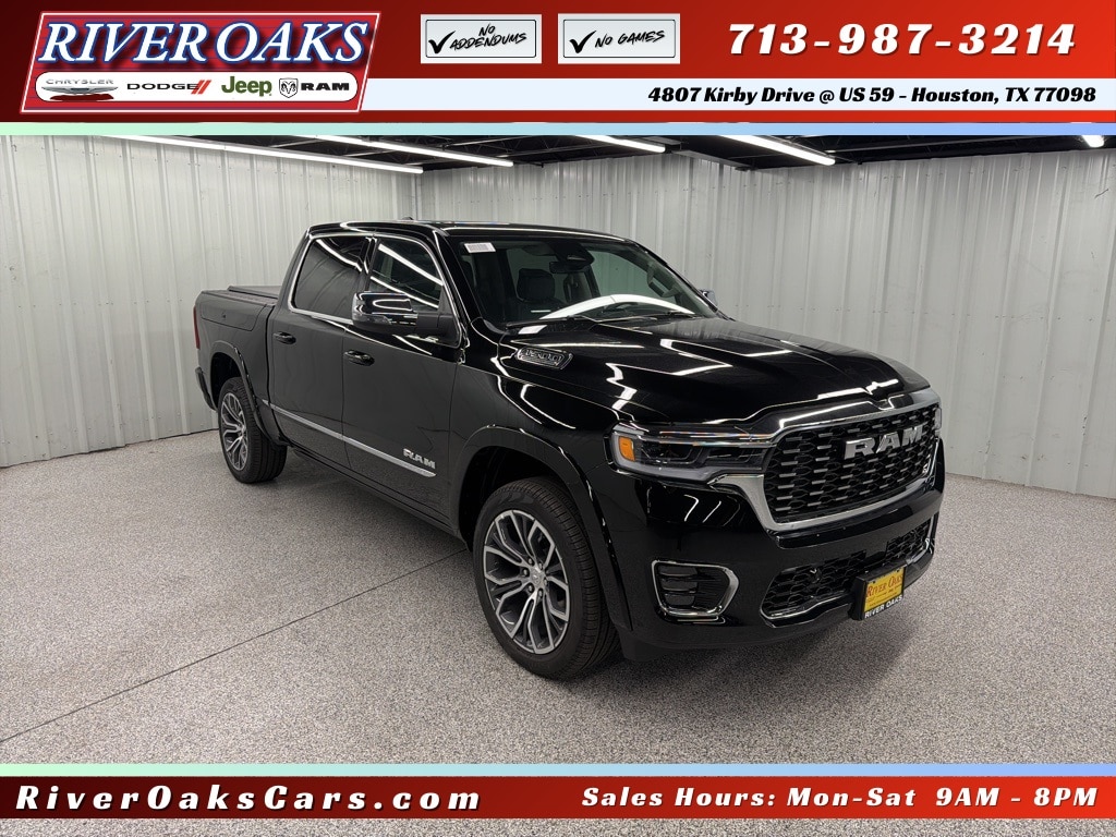 Let the team at River Oaks CDJR introduce you to an entirely new kind of car-buying experience. If you're looking for a deal, this is it. This vehicle is priced below market for immediate sale. No add-ons. No Surprises. Just honest deals. Sin cargos ocultos. Sin sopresas. Solo ofertas honestas. No Pague Mas. Hablamos Espanol! This 2026 Ram 1500 Tungsten in Diamond Black Crystal Pearlcoat comes with the following features: 3.0L I6 8-Speed Automatic 4WD Quick Order Package 22V Tungsten, 12-Way/1-Way Trailer Connector, 3.92 Rear Axle Ratio, 4-Wheel Disc Brakes, ABS brakes, Adjustable pedals, Air Conditioning, Alloy wheels, AM/FM radio, Apple CarPlay/Android Auto, Audio memory, Auto High-beam Headlights, Auto Power-Folding Mirrors, Auto-dimming door mirrors, Auto-Dimming Exterior Driver Mirror, Auto-dimming Rear-View mirror, Auto-leveling suspension, Automatic temperature control, Bodyside moldings, Brake assist, Bumpers: body-color, Chrome Exterior Mirrors, Compass, Delay-off headlights, Driver door bin, Driver vanity mirror, Dual front impact airbags, Dual front side impact airbags, Electronic Stability Control, Exterior Mirrors Courtesy Lamps, Exterior Mirrors w/Heating Element, Exterior Mirrors w/Memory, Exterior Mirrors w/Supplemental Signals, Exterior Parking Camera Rear, Front anti-roll bar, Front Bucket Seats, Front Center Armrest w/Storage, Front dual zone A/C, Front fog lights, Front License Plate Bracket, Front reading lights, Front wheel independent suspension, Fully automatic headlights, Garage door transmitter, Heads-Up Display, Heated door mirrors, Heated front seats, Heated rear seats, Heated steering wheel, Illuminated entry, Leather steering wheel, Low tire pressure warning, Memory seat, Navigation System, Occupant sensing airbag, Outside temperature display, Overhead airbag, Overhead console, Panic alarm, Passenger door bin, Passenger vanity mirror, Pedal memory, Power adjustable front head restraints, Power door mirrors, Power driver seat, Power moonroof, Power passenger seat, Power steering, Power windows, Premium Leather Bucket Seats, Radio data system, Radio: Uconnect 5 Nav w/14.4" Display, Rain sensing wipers, Rear anti-roll bar, Rear reading lights, Rear seat center armrest, Rear step bumper, Rear window defroster, Remote keyless entry, Security system, Speed control, Split folding rear seat, Steering wheel mounted audio controls, Tachometer, Telescoping steering wheel, Tilt steering wheel, Traction control, Trip computer, Turn signal indicator mirrors, Variably intermittent wipers, Ventilated front seats, Ventilated rear seats, Voltmeter, and Wheels: 22" x 9" Polish/Painted w/Inserts.