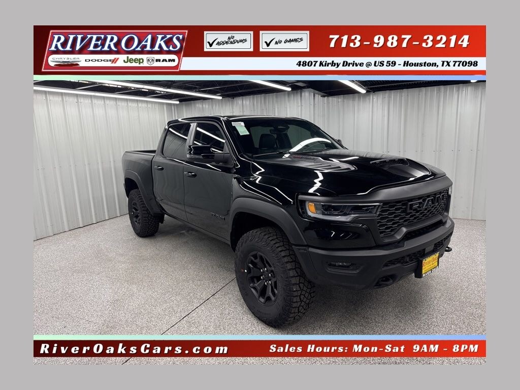 Let the team at River Oaks CDJR introduce you to an entirely new kind of car-buying experience. If you're looking for a deal, this is it. This vehicle is priced below market for immediate sale. No add-ons. No Surprises. Just honest deals. Sin cargos ocultos. Sin sopresas. Solo ofertas honestas. No Pague Mas. Hablamos Espanol! This 2026 Ram 1500 RHO in Diamond Black Crystal Pearlcoat comes with the following features: 3.0L I6 8-Speed Automatic 4WD Quick Order Package 22Y RHO, 10 Speakers, 3.92 Rear Axle Ratio, 4-Wheel Disc Brakes, 4G LTE Wi-Fi Hot Spot, ABS brakes, Adaptive suspension, Adjustable pedals, Air Conditioning, Alloy wheels, AM/FM radio, Apple CarPlay/Android Auto, Auto High-beam Headlights, Auto Power-Folding Mirrors, Auto-dimming door mirrors, Auto-Dimming Exterior Driver Mirror, Auto-dimming Rear-View mirror, Automatic temperature control, Brake assist, Compass, Connected Travel and Traffic Services, Connectivity - US/Canada, Delay-off headlights, Disassociated Touchscreen Display, Driver door bin, Driver vanity mirror, Dual front impact airbags, Dual front side impact airbags, Electronic Stability Control, Exterior Mirrors Courtesy Lamps, Exterior Mirrors with Heating Element, Exterior Mirrors with Supplemental Signals, Exterior Parking Camera Rear, Flareside Box, Front anti-roll bar, Front Bucket Seats, Front Center Armrest w/Storage, Front dual zone A/C, Front fog lights, Front License Plate Bracket, Front reading lights, Front wheel independent suspension, Fully automatic headlights, Garage door transmitter, GPS Navigation, HD Radio, Heated door mirrors, Heated front seats, Heated steering wheel, Illuminated entry, Integrated Center Stack Radio, Integrated Voice Command with Bluetooth, Leather Shift Knob, Leather steering wheel, Leather Trimmed Bucket Seats, Low tire pressure warning, Navigation System, Occupant sensing airbag, Outside temperature display, Overhead airbag, Overhead console, Panic alarm, Passenger door bin, Passenger vanity mirror, Power door mirrors, Power driver seat, Power passenger seat, Power steering, Power windows, Radio data system, Radio: Uconnect 5 Navigation with 12.0" Display, Rear reading lights, Rear seat center armrest, Rear step bumper, Rear window defroster, Remote keyless entry, Security system, SiriusXM Radio Service, Speed control, Split folding rear seat, Sport steering wheel, Steering wheel mounted audio controls, Tachometer, Telescoping steering wheel, Tilt steering wheel, Traction control, Trip computer, Turn signal indicator mirrors, USB Host Flip, Variably intermittent wipers, Voltmeter, and Wheels: 18" x 9" Black Paint/Polish Aluminum.