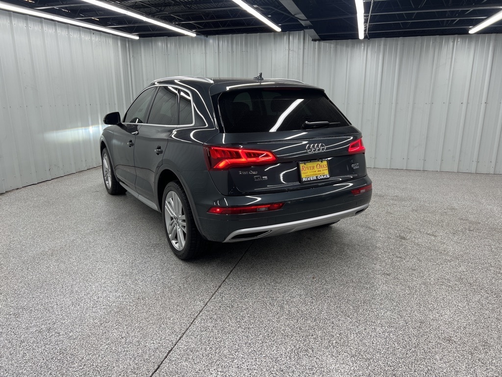 This 2018 Audi Q5 2.0T quattro in Gray Metallic comes with the following features: 2.0L TFSI 7-Speed Automatic S tronic quattro Black Leather Cold Weather Package (3-Step Heated Rear Seats and Heated 3-Spoke Multifunction Steering Wheel), Premium Plus Package (3-Step Heated Front Seats, Audi Side Assist w/Pre Sense Rear, Full LED Headlights, High Gloss Window Surrounds, Panoramic Sunroof w/Tilt/Slide & Power Sunshade, Parking System Plus (Front/Rear Acoustic Sensors), Rear Cross Traffic Assist, Stainless Steel Door Sills, and Vehicle Exit Assist), Black Leather, 10 Speakers, 4-Wheel Disc Brakes, 5.302 Axle Ratio, 8-Way Power Front Bucket Seats, ABS brakes, Air Conditioning, Alloy wheels, AM/FM radio: SiriusXM, Audi Guard All-Weather Floor Mats (Set of 4), Audi smartphone interface (Apple CarPlay/Android Auto), Auto-dimming door mirrors, Auto-dimming Rear-View mirror, Automatic temperature control, Bang & Olufsen 3D Sound System, Black Privacy Trunk Cover, Brake assist, Bumpers: body-color, Compass, Delay-off headlights, Driver door bin, Driver vanity mirror, Dual front impact airbags, Dual front side impact airbags, DVD-Audio, Electronic Stability Control, Emergency communication system: Audi connect CARE, Exterior Parking Camera Rear, Four wheel independent suspension, Front anti-roll bar, Front Bucket Seats, Front Center Armrest, Front dual zone A/C, Front fog lights, Front reading lights, Garage door transmitter: HomeLink, Genuine wood console insert, Genuine wood dashboard insert, Genuine wood door panel insert, Heated door mirrors, High intensity discharge headlights: Xenon plus, Illuminated entry, Leather Seating Surfaces, Leather Shift Knob, Leather steering wheel, Low tire pressure warning, Memory seat, Navigation System, Occupant sensing airbag, Outside temperature display, Overhead airbag, Overhead console, Panic alarm, Passenger door bin, Passenger vanity mirror, Power door mirrors, Power driver seat, Power Liftgate, Power passenger seat, Power steering, Power windows, Radio data system, Radio: MMI Navigation Plus System, Rain sensing wipers, Rear air conditioning, Rear anti-roll bar, Rear fog lights, Rear reading lights, Rear seat center armrest, Rear window defroster, Rear window wiper, Remote keyless entry, Roof rack, Security system, SiriusXM All Access Service, Speed control, Speed-sensing steering, Speed-Sensitive Wipers, Split folding rear seat, Spoiler, Steering wheel mounted audio controls, Tachometer, Telescoping steering wheel, Tilt steering wheel, Traction control, Trip computer, Turn signal indicator mirrors, USB Cables (DISC), Variably intermittent wipers, Wheels: 8" x 18" 5-Double-Spoke Dynamic Design, and Wheels: 8" x 20" 5-Spoke Segment Design.