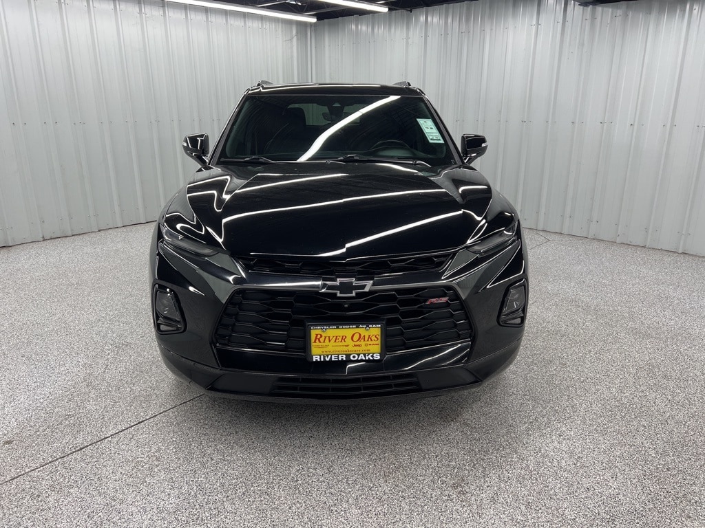 This 2020 Chevrolet Blazer RS in Black comes with the following features: 3.6L V6 SIDI DOHC VVT 9-Speed Automatic FWD Enhanced Convenience & Driver Confidence II Pkg (Advanced Adaptive Cruise Control, Enhanced Automatic Emergency Braking, Following Distance Indicator, Forward Collision Alert, Front Pedestrian Braking, HD Surround Vision, Heated Rear Outboard Seating Positions, IntelliBeam Headlamps, Lane Keep Assist w/Lane Departure Warning, Memory Settings For Driver Seat & Exterior Mirrors, Power Tilt & Telescoping Steering Column, Radio: Chevrolet Infotainment 3 Premium System, Rear Camera Mirror, Safety Alert Seat, SiriusXM w/360L, Ventilated Driver & Front Passenger Seats, and Wireless Charging), Preferred Equipment Group 1RS, 155 Amp Alternator, 3.49 Final Drive Axle Ratio, 4-Wheel Disc Brakes, 6 Speakers, 6-Speaker Audio System Feature, 6-Way Power Front Passenger Seat Adjuster, ABS brakes, Air Conditioning, Alloy wheels, AM/FM radio: SiriusXM, Apple CarPlay/Android Auto, Auto-dimming door mirrors, Auto-dimming Rear-View mirror, Automatic temperature control, Brake assist, Bright Wheel Locks (LPO), Bumpers: body-color, Cargo Management System, Child-Seat-Sensing Airbag, Compass, Delay-off headlights, Driver door bin, Driver vanity mirror, Dual front impact airbags, Dual front side impact airbags, Electronic Stability Control, Emergency communication system: OnStar and Chevrolet connected services capable, Exterior Parking Camera Rear, Four wheel independent suspension, Front anti-roll bar, Front Bucket Seats, Front Center Armrest, Front dual zone A/C, Front reading lights, Fully automatic headlights, Garage door transmitter, Heated door mirrors, Heated Driver & Front Passenger Seats, Heated front seats, Heated steering wheel, High-Intensity Discharge Headlights, Illuminated entry, Knee airbag, Leather Shift Knob, LED Headlamps, Low tire pressure warning, Navigation System, Occupant sensing airbag, Outside temperature display, Overhead airbag, Overhead console, Panic alarm, Passenger door bin, Passenger vanity mirror, Perforated Leather-Appointed Seat Trim, Power door mirrors, Power driver seat, Power Liftgate, Power passenger seat, Power steering, Power windows, Radio data system, Radio: Chevrolet Infotainment 3 Plus System, Rear anti-roll bar, Rear reading lights, Rear seat center armrest, Rear window defroster, Rear window wiper, Remote keyless entry, Ride & Handling Suspension, Security system, Speed control, Speed-sensing steering, Split folding rear seat, Spoiler, Steering wheel mounted audio controls, Tachometer, Telescoping steering wheel, Tilt steering wheel, Traction control, Trip computer, Turn signal indicator mirrors, Variably intermittent wipers, Voltmeter, Wheels: 20" Dark Android Machined-Face Aluminum, and Wheels: 21" Gloss Black Aluminum.