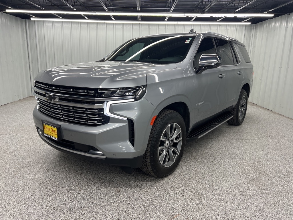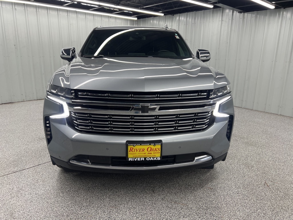 This 2023 Chevrolet Tahoe Premier in Sterling Gray Metallic comes with the following features: EcoTec3 5.3L V8 10-Speed Automatic with Overdrive 4WD 4WD and Jet Black Leather License Plate Front Mounting Package, Preferred Equipment Group 1LZ (1st & 2nd Row Color-Keyed Carpeted Floor Mats, 2-Speed Active Electronic AutoTrac Transfer Case, 3rd Row 60/40 Power-Folding Split-Bench Seat, Auto-Dimming Inside Rear-View Mirror, Bose 10-Speaker Centerpoint Surround Audio Sys Ft, Bright Front & Rear Door Sill Plates, Chrome Door Handles w/Body-Color Strip, Chrome Mirror Caps, Color-Keyed Carpeting Floor Covering, Driver & Front Outboard Passenger Airbags, Dual Exhaust System, Enhanced Driver Information Center, Floor Console, Hands-Free Rear Power Programmable Liftgate, Heated 2nd Row Outboard Seats, Heated Steering Wheel, Hill Descent Control, Infotainment Display, Lane Change Alert w/Side Blind Zone Alert, LED Daytime Running Lamps, Memory Settings, Outside Heated Power-Adjustable Mirrors, Power Release 2nd Row Bucket Seats, Power Tilt & Telescopic Steering Column, Rear Cross Traffic Alert, Remote Start, Safety Alert Seat, SiriusXM Radio w/360L, Universal Home Remote, Wireless Charging, and Wrapped Steering Wheel), 4WD, Jet Black Leather, 10 Speakers, 20" x 9" Polished Aluminum Wheels, 3.23 Rear Axle Ratio, 3rd row seats: split-bench, 4-Wheel Disc Brakes, ABS brakes, Adaptive suspension, Air Conditioning, Alloy wheels, AM/FM radio: SiriusXM with 360L, Apple CarPlay/Android Auto, Auto High-beam Headlights, Auto-dimming door mirrors, Auto-dimming Rear-View mirror, Auto-leveling suspension, Automatic temperature control, Brake assist, Bumpers: body-color, Compass, Delay-off headlights, Driver door bin, Driver vanity mirror, Dual front impact airbags, Dual front side impact airbags, Electronic Stability Control, Emergency communication system: OnStar and Chevrolet connected services capable, Four wheel independent suspension, Front anti-roll bar, Front Bucket Seats, Front Center Armrest, Front dual zone A/C, Front High-Back Reclining Bucket Seats, Front reading lights, Fully automatic headlights, Garage door transmitter, Heated & Ventilated Driver & Front Passenger Seats, Heated door mirrors, Heated Driver & Front Passenger Seats, Heated front seats, Heated rear seats, Heated steering wheel, Illuminated entry, Low tire pressure warning, Magnetic Ride Control Suspension, Memory seat, Navigation System, Occupant sensing airbag, Outside temperature display, Overhead airbag, Overhead console, Panic alarm, Passenger door bin, Passenger vanity mirror, Perforated Leather Seat Trim, Power door mirrors, Power driver seat, Power Liftgate, Power passenger seat, Power steering, Power windows, Premium audio system: Chevrolet Infotainment 3 Premium, Radio: Chevrolet Infotainment 3 Premium System, Rain sensing wipers, Rear air conditioning, Rear anti-roll bar, Rear reading lights, Rear window defroster, Rear window wiper, Remote keyless entry, Roof rack: rails only, Security system, Speed control, Speed-sensing steering, Split folding rear seat, Spoiler, Steering wheel memory, Steering wheel mounted audio controls, Tachometer, Telescoping steering wheel, Tilt steering wheel, Traction control, Trip computer, Turn signal indicator mirrors, Variably intermittent wipers, Ventilated front seats, and Voltmeter.