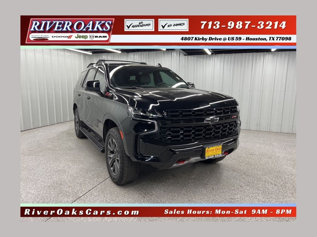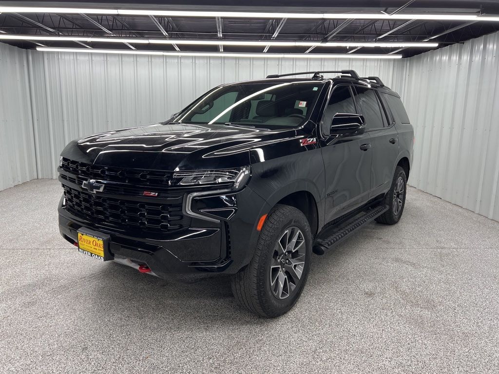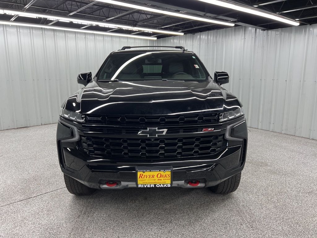This 2023 Chevrolet Tahoe Z71 in Black comes with the following features: EcoTec3 5.3L V8 10-Speed Automatic with Overdrive 4WD 4WD and Gideon/Very Dark Atmosphere Leather Advanced Trailering Package (Hitch Guidance w/Hitch View, Integrated Trailer Brake Controller, and Smart Trailer Integration Indicator), Driver Alert Package (Lane Change Alert w/Side Blind Zone Alert and Rear Cross Traffic Alert), License Plate Front Mounting Package, Luxury Package (2nd Row Pwr Release 60/40 Split-Folding Bench Seat, 3rd Row 60/40 Power-Folding Split-Bench Seat, HD Surround Vision, Heated 2nd Row Outboard Seats, Heated Steering Wheel, Memory Settings, Outside Heated Power-Adjustable Mirrors, Power Tilt & Telescopic Steering Column, and Rear Pedestrian Alert), Max Trailering Package (Extra Capacity Cooling System), Preferred Equipment Group 2Z7 (1st & 2nd Row Color-Keyed Carpeted Floor Mats, 2-Speed Active Electronic AutoTrac Transfer Case, Auto-Dimming Inside Rear-View Mirror, Black Tubular Assist Steps, Bose 9-Speaker Stereo Audio System Feature, Bright Front & Rear Door Sill Plates, Color-Keyed Carpeting Floor Covering, Driver & Front Outboard Passenger Airbags, Enhanced Driver Information Center, Floor Console w/Storage Area, Front High-Approach Angle Fascia, Hands-Free Rear Power Programmable Liftgate, Hill Descent Control, Infotainment Display, LED Daytime Running Lamps, Memory Settings for Driver, Red Horizontal-Mounted Recovery Hooks, Remote Start, SiriusXM Radio w/360L, Universal Home Remote, Wireless Charging, and Wrapped Steering Wheel), 4WD, Gideon/Very Dark Atmosphere Leather, 10-Way Power Driver & Passenger Seat Adjusters, 3.23 Rear Axle Ratio, 3rd row seats: split-bench, 4-Wheel Disc Brakes, 9 Speakers, ABS brakes, Air Conditioning, Alloy wheels, AM/FM radio: SiriusXM with 360L, Apple CarPlay/Android Auto, Auto High-beam Headlights, Auto-dimming Rear-View mirror, Automatic temperature control, Black Roof Rack Cross Rails, Brake assist, Bumpers: body-color, Compass, Delay-off headlights, Driver door bin, Driver vanity mirror, Dual front impact airbags, Dual front side impact airbags, Dual-Pane Power Panoramic Sunroof, Electronic Stability Control, Emergency communication system: OnStar and Chevrolet connected services capable, Four wheel independent suspension, Front anti-roll bar, Front Bucket Seats, Front Center Armrest, Front dual zone A/C, Front High-Back Reclining Bucket Seats, Front reading lights, Fully automatic headlights, Garage door transmitter, Heated door mirrors, Heated Driver & Front Passenger Seats, Heated front seats, Illuminated entry, Leather-Appointed Seat Trim, Low tire pressure warning, Memory seat, Navigation System, Occupant sensing airbag, Outside temperature display, Overhead airbag, Overhead console, Panic alarm, Passenger door bin, Passenger vanity mirror, Power door mirrors, Power driver seat, Power Liftgate, Power passenger seat, Power Release 2nd Row Bucket Seats, Power steering, Power windows, Premium audio system: Chevrolet Infotainment 3 Premium, Premium Smooth Ride Suspension, Radio: Chevrolet Infotainment 3 Premium System, Rain sensing wipers, Rear air conditioning, Rear anti-roll bar, Rear reading lights, Rear seat center armrest, Rear window defroster, Rear window wiper, Remote keyless entry, Roof rack: rails only, Security system, Speed control, Speed-sensing steering, Split folding rear seat, Spoiler, Steering wheel mounted audio controls, Tachometer, Telescoping steering wheel, Tilt steering wheel, Traction control, Trip computer, Variably intermittent wipers, Voltmeter, and Wheels: 20" x 9" Machined Aluminum.