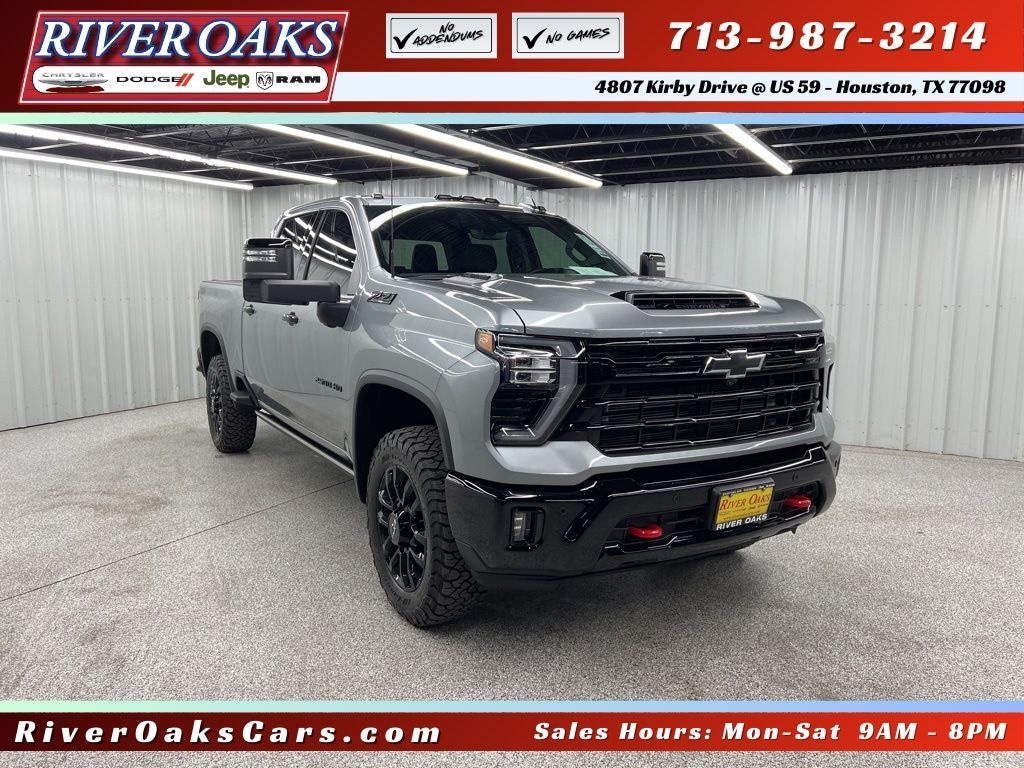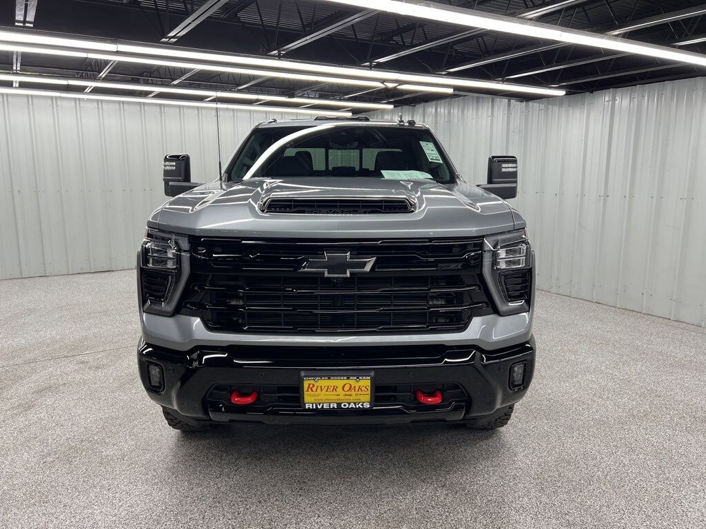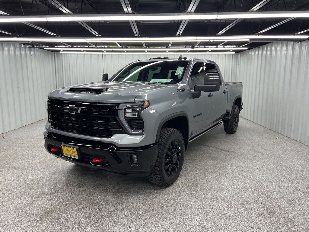 This 2026 Chevrolet Silverado 2500HD LTZ Z71 in Sterling Gray comes with the following features: Duramax 6.6L V8 Turbodiesel 10-Speed Automatic 4WD 10-Speed Automatic, 4WD, and Jet Black Leather LTZ Convenience Package (2 Charge/Data USB Ports Inside Center Console, BOSE Premium 7-Speaker Sound System, Floor-Mounted Center Console, Front Bucket Seats, LED Cargo Area Lighting, Ventilated Driver and Front Passenger Seats, and Wireless Charging), LTZ Convenience Package II (Adaptive Cruise Control, Heated 2nd Row Outboard Seats, Power Sliding Rear Window with Defogger, and Universal Home Remote), Preferred Equipment Group 1LZ (10-Way Power Driver Seat Adjuster with Lumbar, 10-Way Power Passenger Seat Adjuster with Lumbar, 120-Volt Bed Mounted Power Outlet, 120-Volt Interior Power Outlet, 170 Amp Alternator, 6-Speaker Audio System, Auto-Dimming Inside Rear-View Mirror, Bluetooth® For Phone, Chevrolet Connected Access Capable, Chrome Door Handles, Chrome Mirror Caps, Color-Keyed Carpeting Floor Covering, Compass, Deep-Tinted Glass, Driver Memory, Durabed Pickup Bed, Electric Rear-Window Defogger, Electronic Cruise Control with Set and Resume Speed, EZ Lift Power Lock and Release Tailgate, Front 40/20/40 Split-Bench Seats with Lockable Storage, Front LED Fog Lamps, Front Rain-Sensing Wipers, Front Rubberized Vinyl Floor Mats, HD Rear Vision Camera, Heated Driver and Front Outboard Passenger Seating, Heated Steering Wheel, Hitch Guidance with Hitch View, in-Vehicle Trailering App System, Keyless Open and Start, Manual Tilt and Telescoping Steering Column, OnStar Services Capable, Perforated Leather-Appointed Front Outboard Seat Trim, Power Door Locks, Power Front Windows with Driver Express Up/Down, Power Front Windows with Passenger Express Up/Down, Power Rear Windows with Express Down, Push Button Start, Rear Rubberized Vinyl Floor Mats, Rear Wheelhouse Liners, Remote Vehicle Starter System, SiriusXM with 360L Trial Subscription, Standard Tailgate, Steering Wheel Audio Controls, Unauthorized Entry Theft-Deterrent System, Wheels: 18" Machined Aluminum with Silver Painted Accents, Wi-Fi Hotspot Capable, Wireless Phone Projection, and Wrapped Steering Wheel), Safety Package (Bed View Camera with Two Trailer Camera Provisions, HD Surround Vision, Rear Cross Traffic Alert, Safety Alert Seat, Trailer Camera Provisions, Trailer Side Blind Zone Alert, and Ultrasonic Front and Rear Park Assist), Suspension Package, Technology Package (15" Diagonal Multicolor Head-Up Display and Rear Camera Mirror), Trail Boss Package (Black Chevytec Spray-on Bedliner, Black Grille Bar with Chevy Black Bow Tie, Front Frame-Mounted Red Recovery Hooks, High Gloss Black Door Handles, High Gloss Black Front Bumper, High Gloss Black Mirror Caps, High Gloss Black Rear Bumper, and Wheels: 20" High Gloss Black Painted), Up-Level Rear Seat with Storage Package, Z71 Off-Road Package (Hill Descent Control and Off-Road Suspension), 10-Speed Automatic, 4WD, Jet Black Leather, 1st and 2nd Row All-Weather Floor Liners, 220 Amp Alternator, 4-Wheel Disc Brakes, 6 Speakers, 720 Cold-Cranking Amps Heavy-Duty Battery, ABS brakes, Air Conditioning, Alloy wheels, AM/FM radio: SiriusXM with 360L, Apple CarPlay/Android Auto, Auto High-beam Headlights, Auto-dimming door mirrors, Auto-dimming Rear-View mirror, Automatic temperature control, Brake assist, Bumpers: chrome, Delay-off headlights, Driver door bin, Driver vanity mirror, Dual 730 Cold-Cranking Amps Heavy-Duty Battery, Dual front impact airbags, Dual front side impact airbags, Electronic Stability Control, Emergency communication system: OnStar, Engine Block Heater, Exhaust Brake, Front anti-roll bar, Front Center Armrest w/Storage, Front dual zone A/C, Front fog lights, Front License Plate Kit, Front reading lights, Front wheel independent suspension, Fully automatic headlights, Heated door mirrors, Heated front seats, Heated steering wheel, Illuminated en