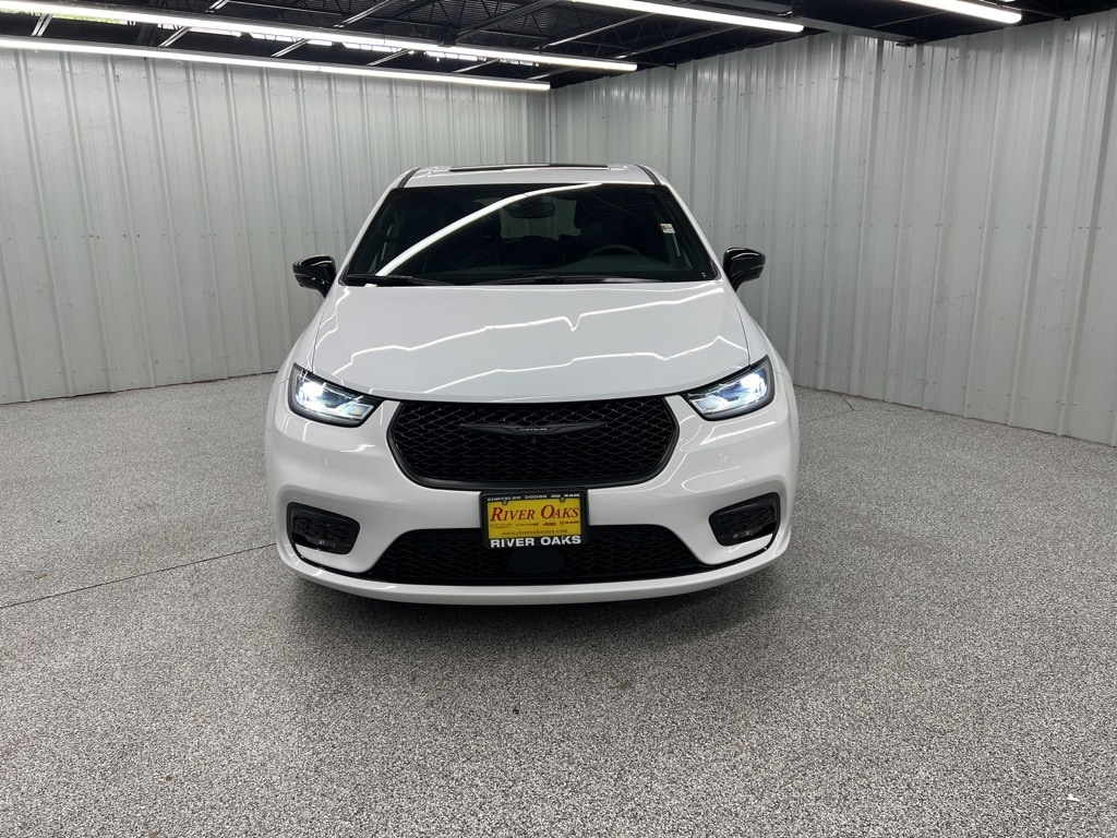 This 2023 Chrysler Pacifica Hybrid Limited in Bright White Clearcoat comes with the following features: 3.6L V6 CVT FWD 3.6L V6 MOPAR Roadside Emergency Kit (DISC) (First Aid Kit, Reflecting Triangle, and Tool Kit), Quick Order Package 2EP, S Appearance Package (Anodized Ink Badging, Black Day Light Opening Moldings, Body Color Door Handles, Front Fascia Air Deflectors, Gloss Black Exterior Mirrors, Nappa Leather Bucket Seats w/S Logo, Piano Black Interior Accents, Premium Fascia Upper/Lower Grille w/Black Surround, Premium Rear Fascia Black, S Badge, and Wheels: 18" x 7.5" S-Model Aluminum Design 3), Safety Sphere (360 Surround View Camera System, Parallel & Perpendicular Park Assist w/Stop, and ParkSense Front/Rear Park Assist w/Stop), Uconnect Theater Family Group (115V Auxiliary Power Outlet, 20 harman/kardon Speakers, 2nd & 3rd Row Window Shades, 3-Channel Video Remote Control, 760 Watt Amplifier, Amazon Fire TV Built-In, Auto-Dimming Rear-View Mirror, FamCAM Interior Camera, Hands Free Sliding Doors, High Definition Multimedia Interface, Integrated Active Noise Cancellation, KeySense, Seatback Video Screens, and Video USB Port), 3.6L V6, 13 Speakers, 3.59 Axle Ratio, 3rd row seats: split-bench, 4-Wheel Disc Brakes, ABS brakes, Air Conditioning, Alloy wheels, AM/FM radio: SiriusXM 360L, Apple CarPlay/Android Auto, Audio memory, Auto-dimming Rear-View mirror, Automatic temperature control, Black Seats, Bodyside moldings, Brake assist, Bumpers: body-color, Compass, Delay-off headlights, Driver door bin, Driver vanity mirror, Driver's Seat Mounted Armrest, Dual front impact airbags, Dual front side impact airbags, Electronic Stability Control, Emergency communication system: Uconnect Access, Exterior Parking Camera Rear, Four wheel independent suspension, Front anti-roll bar, Front Bucket Seats, Front dual zone A/C, Front fog lights, Front reading lights, Fully automatic headlights, Garage door transmitter, Heated door mirrors, Heated front seats, Heated steering wheel, Heavy Duty Suspension, Illuminated entry, Knee airbag, Low tire pressure warning, Memory seat, Nappa Leather Bucket Seats, Navigation System, Occupant sensing airbag, Outside temperature display, Overhead airbag, Overhead console, Panic alarm, Passenger door bin, Passenger seat mounted armrest, Passenger vanity mirror, Power door mirrors, Power driver seat, Power Liftgate, Power moonroof, Power passenger seat, Power steering, Power windows, Radio data system, Radio: Uconnect 5 Nav w/10.1" Display, Rain sensing wipers, Rear air conditioning, Rear reading lights, Rear window defroster, Rear window wiper, Reclining 3rd row seat, Remote keyless entry, Security system, Speed control, Split folding rear seat, Spoiler, Steering wheel mounted audio controls, Tachometer, Telescoping steering wheel, Tilt steering wheel, Traction control, Trip computer, Turn signal indicator mirrors, Variably intermittent wipers, Ventilated front seats, Voltmeter, and Wheels: 17" x 7.0" Diamond Cut w/Painted Pockets.