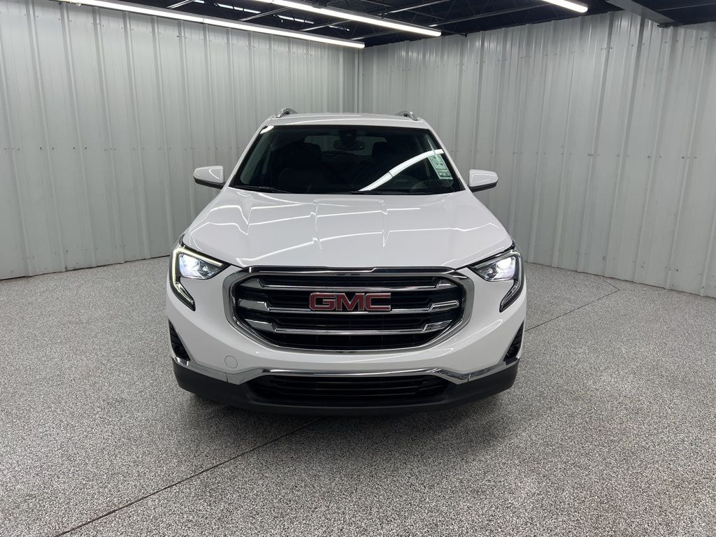 This 2020 GMC Terrain SLT in Summit White comes with the following features: 1.5L DOHC 9-Speed Automatic AWD AWD Memory Package, Preferred Equipment Group 4SA, Preferred Package (6-Way Power Front Passenger Seat, Front Passenger 2-Way Power Lumbar, Hands-Free Rear Power Programmable Liftgate, Heated Steering Wheel, and Universal Home Remote), AWD, 2 USB Data Ports, 2 USB Data Ports w/SD Card Reader, 3.47 Axle Ratio, 4-Way Manual Front Passenger Seat, 4-Wheel Disc Brakes, 6 Speakers, 6-Speaker Audio System Feature, 8-Way Power Driver Seat Adjuster, ABS brakes, Air Conditioning, Alloy wheels, AM/FM radio: SiriusXM, Apple CarPlay/Android Auto, Auto High-beam Headlights, Auto-dimming door mirrors, Auto-dimming Rear-View mirror, Automatic temperature control, Bluetooth® For Phone, Brake assist, Bumpers: body-color, Compass, Delay-off headlights, Driver & Front Passenger Heated Seats, Driver door bin, Driver vanity mirror, Dual front impact airbags, Dual front side impact airbags, Electronic Stability Control, Emergency communication system: OnStar and GMC connected services capable, Exterior Parking Camera Rear, Four wheel independent suspension, Front anti-roll bar, Front Bucket Seats, Front Center Armrest, Front dual zone A/C, Front fog lights, Front reading lights, Fully automatic headlights, Heated door mirrors, Heated front seats, High-Intensity Discharge Headlights, Illuminated entry, Lane Departure Warning System, Low tire pressure warning, Occupant sensing airbag, Outside temperature display, Overhead airbag, Overhead console, Panic alarm, Passenger door bin, Passenger vanity mirror, Perforated Leather-Appointed Seat Trim, Power door mirrors, Power Driver Lumbar Control, Power driver seat, Power steering, Power windows, Radio data system, Radio: GMC Infotainment Audio System w/8" Display, Rear anti-roll bar, Rear seat center armrest, Rear window defroster, Rear window wiper, Remote keyless entry, Roof rack: rails only, Security system, SiriusXM Radio, Speed control, Speed-sensing steering, Split folding rear seat, Spoiler, Steering wheel mounted audio controls, Tachometer, Telescoping steering wheel, Tilt steering wheel, Traction control, Trip computer, Turn signal indicator mirrors, Variably intermittent wipers, and Wheels: 18" x 7" Machined Aluminum w/Gray Accents.