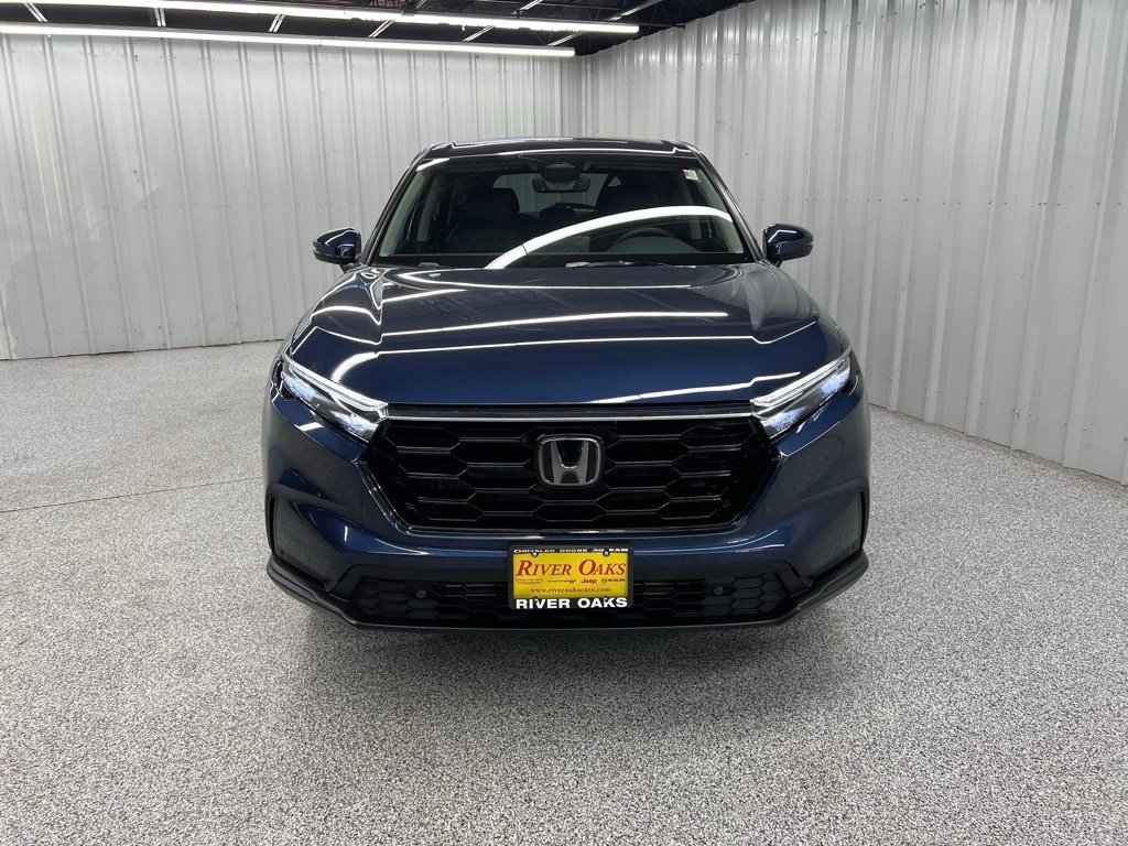 This 2025 Honda CR-V EX-L in Canyon River Bl comes with the following features: 1.5L I4 DOHC 16V CVT AWD AWD AWD, 4-Wheel Disc Brakes, 8 Speakers, ABS brakes, Adaptive Cruise Control: Adaptive Cruise Control (ACC) with Low-Speed Follow, Air Conditioning, Alloy wheels, AM/FM radio: SiriusXM, Auto High-beam Headlights, Auto-dimming Rear-View mirror, Automatic temperature control, Blind Spot Information (BSI) System warning, Brake assist, Bumpers: body-color, Compass, Delay-off headlights, Driver door bin, Driver vanity mirror, Dual front impact airbags, Dual front side impact airbags, Electronic Stability Control, Exterior Parking Camera Rear, Four wheel independent suspension, Front anti-roll bar, Front Bucket Seats, Front Center Armrest, Front dual zone A/C, Front reading lights, Fully automatic headlights, Heated door mirrors, Heated Front Bucket Seats, Heated front seats, Illuminated entry, Knee airbag, Leather Seat Trim, Leather Shift Knob, Leather steering wheel, Low tire pressure warning, Memory seat, Occupant sensing airbag, Outside temperature display, Overhead airbag, Overhead console, Panic alarm, Passenger door bin, Passenger vanity mirror, Power door mirrors, Power driver seat, Power Liftgate, Power moonroof, Power passenger seat, Power steering, Power windows, Radio data system, Radio: 320-Watt AM/FM/HD/SiriusXM Audio System, Rear anti-roll bar, Rear reading lights, Rear seat center armrest, Rear side impact airbag, Rear window defroster, Rear window wiper, Remote keyless entry, Security system, Speed control, Speed-sensing steering, Speed-Sensitive Wipers, Split folding rear seat, Spoiler, Steering wheel mounted audio controls, Tachometer, Telescoping steering wheel, Tilt steering wheel, Traction control, Trip computer, Turn signal indicator mirrors, Variably intermittent wipers, and Wheels: 18" Sparkle Silver Metallic.
