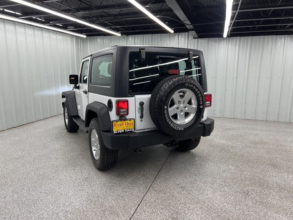 This 2014 Jeep Wrangler Sport in Bright White Clearcoat comes with the following features: 3.6L V6 24V VVT 5-Speed Automatic 4WD Connectivity Group (Remote USB Port, Tire Pressure Monitoring Display, Uconnect Voice Command w/Bluetooth, and Vehicle Information Center), Power Convenience Group (Auto-Dimming Mirror w/Reading Lamp, Front 1-Touch Down Power Windows, Power Heated Mirrors, Power Locks, Remote Keyless Entry, and Security Alarm), Quick Order Package 23B, Quick Order Package 24S (17" x 7.5" Aluminum Wheels, Air Conditioning, Chrome/Leather Wrapped Shift Knob, and Leather Wrapped Steering Wheel), Trailer Tow Group (Trailer Tow w/4-Pin Connector Wiring), 1-Year SIRIUSXM Radio Service, 16" x 7.0" Luxury Styled Steel Wheels, 4-Wheel Disc Brakes, 6 Speakers, ABS brakes, AM/FM radio, Anti-Spin Differential Rear Axle, Black 3-Piece Hard Top, Brake assist, CD player, Cloth Bucket Seats, Compass, Delete Sunrider Soft Top, Driver door bin, Driver vanity mirror, Dual front impact airbags, Electronic Stability Control, Freedom Panel Storage Bag, Front anti-roll bar, Front Bucket Seats, Front Center Armrest w/Storage, Front fog lights, Integrated roll-over protection, Low tire pressure warning, Manufacturer's Statement of Origin, MOPAR Slush Mats, Normal Duty Suspension, Occupant sensing airbag, Outside temperature display, Passenger door bin, Passenger vanity mirror, Power steering, Radio: Uconnect 130 AM/FM/CD/MP3, Rear anti-roll bar, Rear Window Defroster, Rear Window Wiper/Washer, SIRIUS Satellite Radio, Speed control, Steering wheel mounted audio controls, Sunrider Soft Top, Tachometer, Tilt steering wheel, Tinted Rear Quarter & Liftgate Windows, Traction control, Trip computer, and Variably intermittent wipers.
