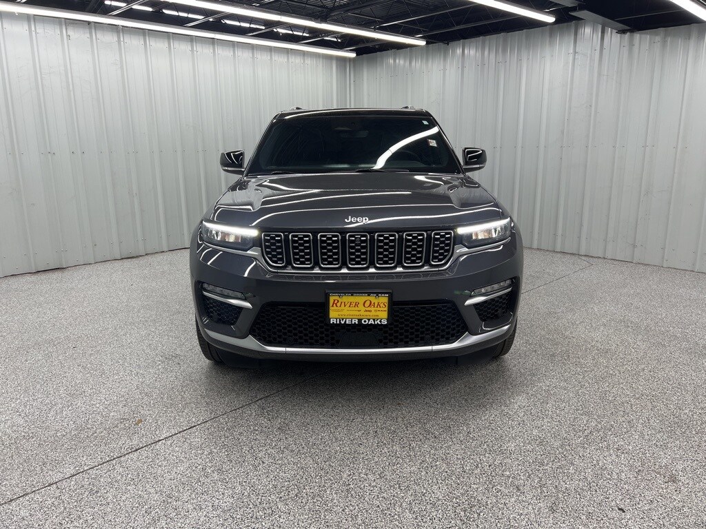 This 2023 Jeep Grand Cherokee Summit 4xe in Baltic Gray Metallic Clearcoat comes with the following features: 2.0L I4 DOHC 8-Speed Automatic 4WD 2.0L I4 DOHC, 4WD, ABS brakes, Alloy wheels, Compass, Electronic Stability Control, Front dual zone A/C, Heated door mirrors, Heated front seats, Heated rear seats, Illuminated entry, Low tire pressure warning, Navigation System, Power Liftgate, Power moonroof, Rear dual zone A/C, Remote keyless entry, and Traction control Two Tone Paint Group, 2.0L I4 DOHC, 4WD, ABS brakes, Alloy wheels, Compass, Electronic Stability Control, Front dual zone A/C, Heated door mirrors, Heated front seats, Heated rear seats, Illuminated entry, Low tire pressure warning, Navigation System, Power Liftgate, Power moonroof, Rear dual zone A/C, Remote keyless entry, Traction control, 19 Speakers, 3.70 Rear Axle Ratio, 4-Wheel Disc Brakes, Adaptive suspension, Air Conditioning, AM/FM radio: SiriusXM with 360L, Anti-whiplash front head restraints, Audio memory, Auto High-beam Headlights, Auto-dimming door mirrors, Auto-dimming Rear-View mirror, Auto-leveling suspension, Automatic temperature control, Brake assist, Bumpers: body-color, Delay-off headlights, Driver door bin, Driver vanity mirror, Dual front impact airbags, Dual front side impact airbags, Four wheel independent suspension, Front anti-roll bar, Front Bucket Seats, Front Center Armrest w/Storage, Front fog lights, Front reading lights, Fully automatic headlights, Garage door transmitter, Genuine wood dashboard insert, Genuine wood door panel insert, Heated steering wheel, Heavy Duty Suspension, Knee airbag, Leather steering wheel, Memory seat, Nappa Leather Seats, Occupant sensing airbag, Outside temperature display, Overhead airbag, Overhead console, Panic alarm, Passenger door bin, Passenger vanity mirror, Power door mirrors, Power driver seat, Power passenger seat, Power steering, Power windows, Radio data system, Radio: Uconnect 5 Nav w/10.1" Display, Rain sensing wipers, Rear air conditioning, Rear anti-roll bar, Rear reading lights, Rear seat center armrest, Rear window defroster, Rear window wiper, Security system, Speed control, Speed-Sensitive Wipers, Split folding rear seat, Spoiler, Steering wheel memory, Steering wheel mounted audio controls, Tachometer, Telescoping steering wheel, Tilt steering wheel, Trip computer, Turn signal indicator mirrors, Variably intermittent wipers, Ventilated front seats, Voltmeter, and Wheels: 20" x 8.5" Fully Painted Aluminum Silver.