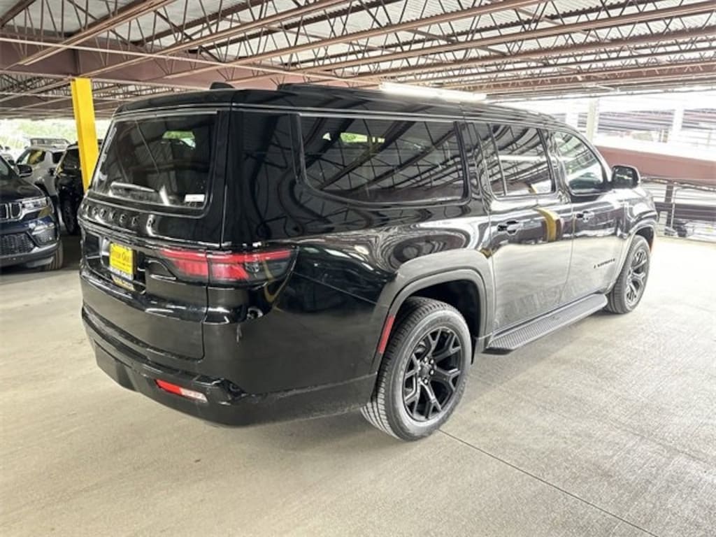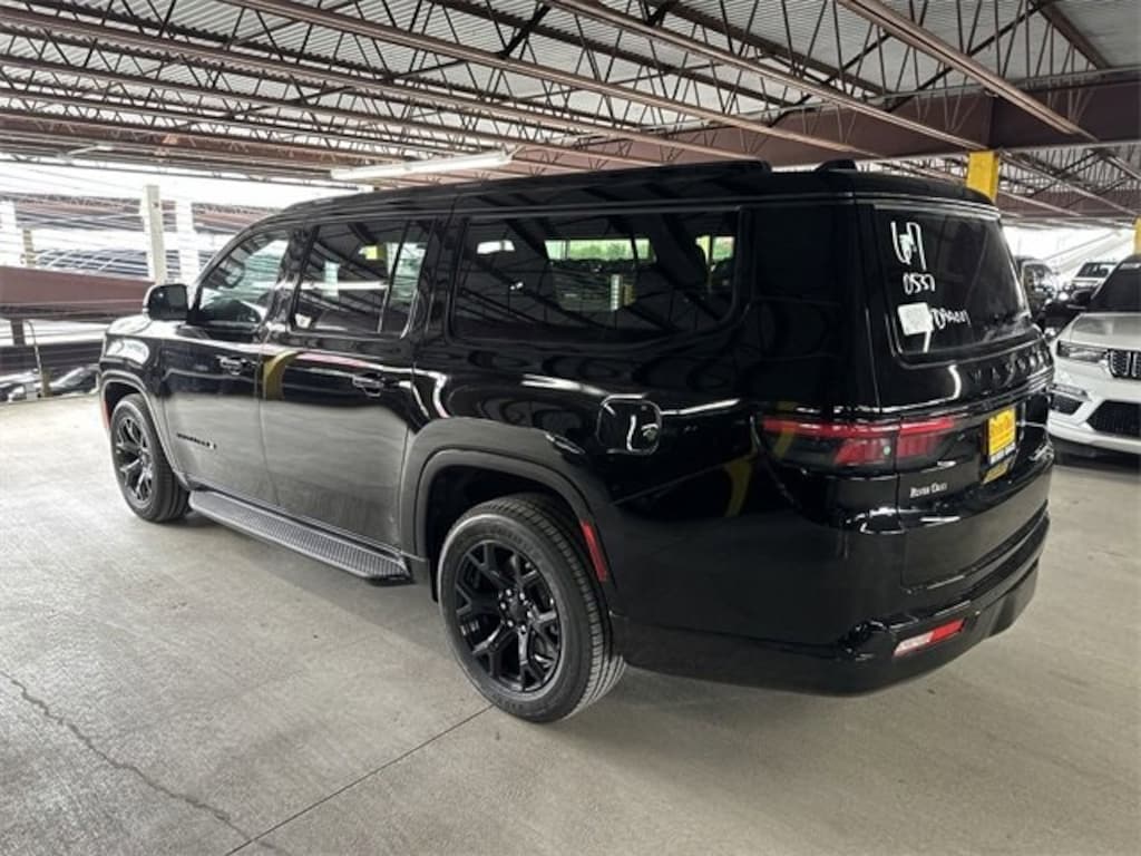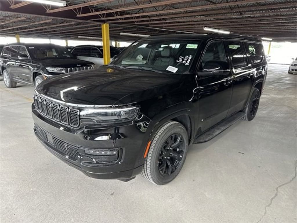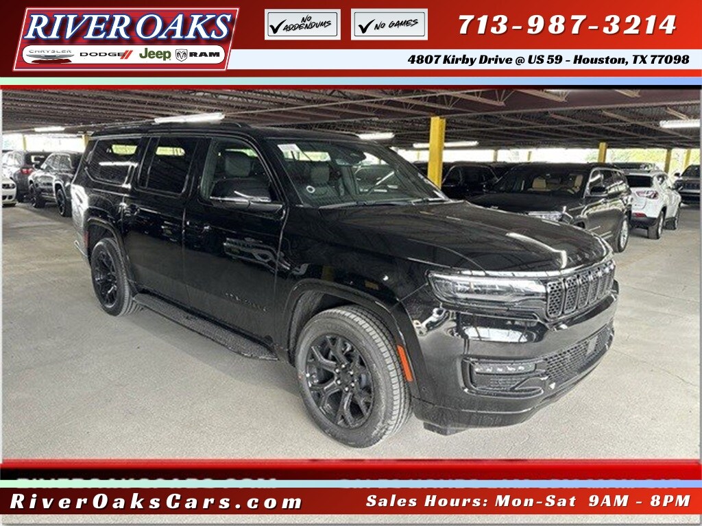 This 2024 Jeep Wagoneer L Series II in Diamond Black Crystal Pearlcoat comes with the following features: 3.0L I6 8-Speed Automatic 4WD Carbide Appearance Package, Flexible Seating Group (40/20/40 2nd Row Bench Power Tip/Slide, 8-Passenger Seating, and Full Length Floor Console), Quick Order Package 25F Carbide (3 Panel Sunroof, Adjustable Roof Rail Crossbars, Black Interior Accents, Piano Black Exterior Accents, Reversible Carpet/Vinyl Cargo Mat, and Wheels: 20" x 9.0" Aluminum Painted Gloss Black), 10 Speakers, 3.55 Rear Axle Ratio, 3rd row seats: bench, 4-Wheel Disc Brakes, ABS brakes, Adjustable pedals, Air Conditioning, Alloy wheels, AM/FM radio: SiriusXM with 360L, Anti-whiplash front head restraints, Apple CarPlay/Android Auto, Audio memory, Auto-dimming door mirrors, Auto-dimming Rear-View mirror, Auto-leveling suspension, Automatic temperature control, Brake assist, Bumpers: body-color, Compass, Delay-off headlights, Driver door bin, Driver vanity mirror, Driver's Seat Mounted Armrest, Dual front impact airbags, Dual front side impact airbags, Electronic Stability Control, Emergency communication system: Wagoneer Connect, Exterior Parking Camera Rear, Four wheel independent suspension, Front anti-roll bar, Front Bucket Seats, Front Center Armrest w/Storage, Front dual zone A/C, Front fog lights, Front reading lights, Fully automatic headlights, Garage door transmitter, Genuine wood console insert, Genuine wood dashboard insert, Genuine wood door panel insert, Heated door mirrors, Heated front seats, Heated steering wheel, Illuminated entry, Knee airbag, Leather Trimmed Bucket Seats, Low tire pressure warning, Memory seat, Navigation System, Normal Duty Suspension, Occupant sensing airbag, Outside temperature display, Overhead airbag, Overhead console, Panic alarm, Passenger door bin, Passenger seat mounted armrest, Passenger vanity mirror, Pedal memory, Power adjustable front head restraints, Power door mirrors, Power driver seat, Power Liftgate, Power passenger seat, Power steering, Power windows, Radio data system, Radio: Uconnect 5 Nav w/10.1" Display, Rain sensing wipers, Rear air conditioning, Rear anti-roll bar, Rear reading lights, Rear seat center armrest, Rear window defroster, Rear window wiper, Reclining 3rd row seat, Remote keyless entry, Security system, Speed control, Speed-sensing steering, Speed-Sensitive Wipers, Split folding rear seat, Steering wheel memory, Steering wheel mounted audio controls, Tachometer, Telescoping steering wheel, Tilt steering wheel, Traction control, Trip computer, Turn signal indicator mirrors, Variably intermittent wipers, Ventilated front seats, Voltmeter, and Wheels: 20" x 9.0" Premium 2 Aluminum.