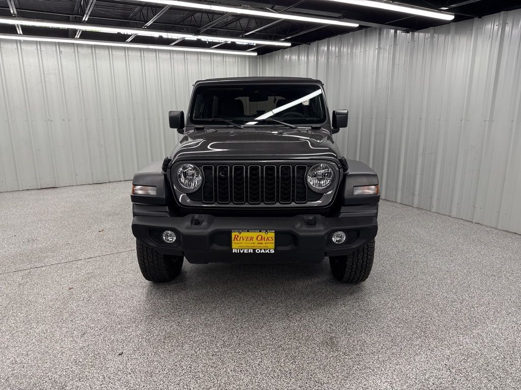 This 2024 Jeep Wrangler Sport S in Granite Crystal Metallic Clearcoat comes with the following features: 3.6L V6 24V VVT 8-Speed Automatic 4WD Convenience Group (2-Door Passive Entry, Front Door Locks, Air Conditioning w/Auto Temperature Control, Air Filtering, Cluster 7.0" TFT Color Display, Emergency/Assistance Call, Heated Front Seats, Heated Steering Wheel, Remote Start System, and Universal Garage Door Opener), Quick Order Package 24S Sport S (Advanced Brake Assist, Automatic Headlamps, Corning Gorilla Glass, Deep Tint Sunscreen Windows, Enhanced Adaptive Cruise Control, Front 1-Touch Down Power Windows, Full Speed Forward Collision Warning Plus, Power Heated Mirrors, Premium Wrapped Steering Wheel, Remote Keyless Entry, Security Alarm, Speed Sensitive Power Locks, Sport S, Sun Visors w/Illuminated Vanity Mirrors, and Wheels: 17" x 7.5" Gray), Technology Group (240 Amp Alternator and Alpine Premium Audio System), 110 MPH Vehicle Max Speed Calibration, 3.45 Overall Top Gear Ratio, 4-Wheel Disc Brakes, 8 Speakers, ABS brakes, Air Conditioning, AM/FM radio, Apple CarPlay/Android Auto, Aux Battery, Brake assist, Cloth Low-Back Bucket Seats, Compass, Delay-off headlights, Driver door bin, Driver vanity mirror, Dual front impact airbags, Dual front side impact airbags, Electronic Stability Control, Front anti-roll bar, Front Bucket Seats, Front Center Armrest w/Storage, Front fog lights, Front reading lights, Integrated roll-over protection, Low tire pressure warning, MOPAR All-Weather Floor Mats, Non-Lock Fuel Cap w/o Discriminator, Normal Duty Suspension, Occupant sensing airbag, Outside temperature display, Overhead airbag, ParkView Rear Back-Up Camera, Passenger door bin, Passenger vanity mirror, Power steering, Radio data system, Radio: Uconnect 5 w/12.3" Display, Rear anti-roll bar, Rear reading lights, Speed control, Split folding rear seat, Steering wheel mounted audio controls, Stop-Start Dual Battery System, Tachometer, Telescoping steering wheel, Tilt steering wheel, Traction control, Trip computer, Variably intermittent wipers, and Wheels: 17" x 7.5" Black Steel Styled.