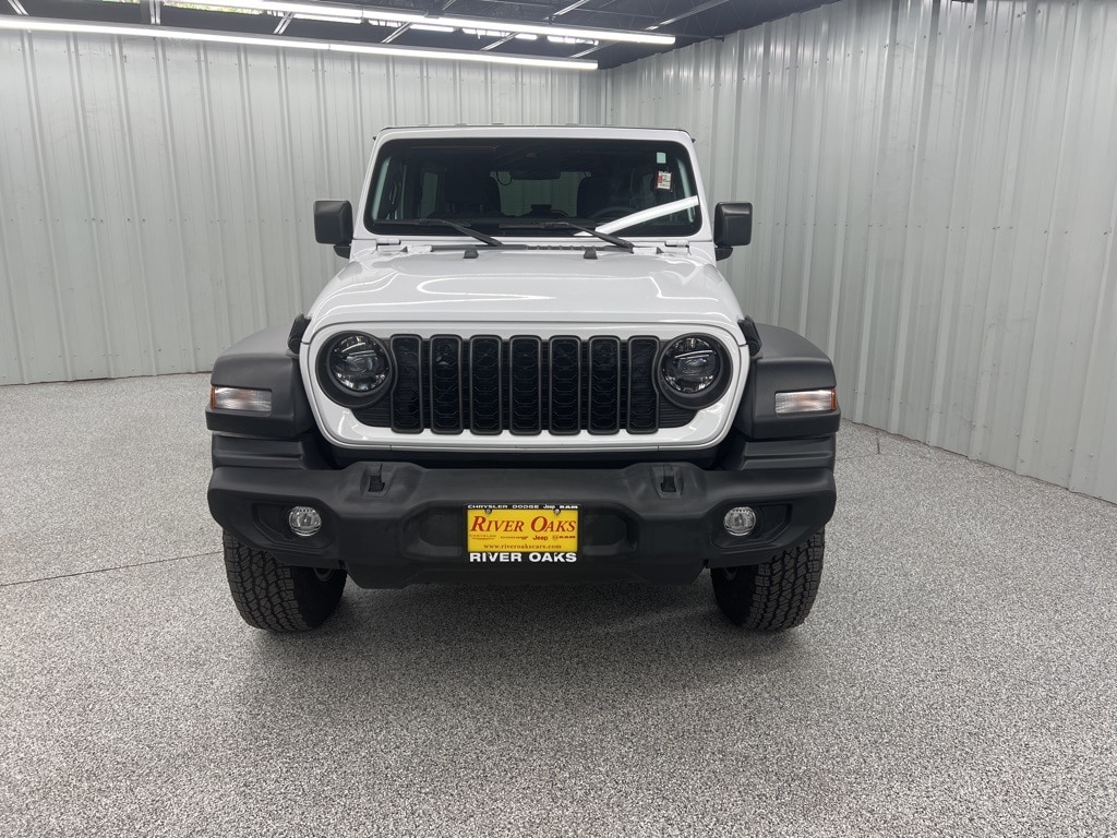 This 2024 Jeep Wrangler Sport S in Bright White Clearcoat comes with the following features: 3.6L V6 24V VVT 8-Speed Automatic 4WD Convenience Group (2-Door Passive Entry, Front Door Locks, Air Conditioning w/Auto Temperature Control, Air Filtering, Cluster 7.0" TFT Color Display, Emergency/Assistance Call, Heated Front Seats, Heated Steering Wheel, Remote Start System, and Universal Garage Door Opener), LED Headlamp & Fog Lamp Group (Front LED Fog Lamps and LED Premium Reflector Headlamps), Quick Order Package 24S Sport S (Advanced Brake Assist, Automatic Headlamps, Corning Gorilla Glass, Deep Tint Sunscreen Windows, Enhanced Adaptive Cruise Control, Front 1-Touch Down Power Windows, Full Speed Forward Collision Warning Plus, Power Heated Mirrors, Premium Wrapped Steering Wheel, Remote Keyless Entry, Security Alarm, Speed Sensitive Power Locks, Sport S, Sun Visors w/Illuminated Vanity Mirrors, and Wheels: 17" x 7.5" Gray), Technology Group (240 Amp Alternator and Alpine Premium Audio System), Trailer Tow & Aux Switch Group (7 & 4 Pin Wiring Harness, Auxiliary Switches, and Class II Receiver Hitch), 110 MPH Vehicle Max Speed Calibration, 3.45 Overall Top Gear Ratio, 4-Wheel Disc Brakes, 8 Speakers, ABS brakes, Air Conditioning, AM/FM radio, Apple CarPlay/Android Auto, Aux Battery, Black 3-Piece Hard Top, Brake assist, Cloth Low-Back Bucket Seats, Compass, Delay-off headlights, Driver door bin, Driver vanity mirror, Dual front impact airbags, Dual front side impact airbags, Electronic Stability Control, Freedom Panel Storage Bag, Front anti-roll bar, Front Bucket Seats, Front Center Armrest w/Storage, Front fog lights, Front reading lights, Integrated roll-over protection, Low tire pressure warning, MOPAR All-Weather Floor Mats, No Soft Top, Non-Lock Fuel Cap w/o Discriminator, Normal Duty Suspension, Occupant sensing airbag, Outside temperature display, Overhead airbag, ParkView Rear Back-Up Camera, Passenger door bin, Passenger vanity mirror, Power steering, Radio data system, Radio: Uconnect 5 w/12.3" Display, Rear anti-roll bar, Rear reading lights, Rear Window Defroster, Rear Window Wiper/Washer, Speed control, Split folding rear seat, Steering wheel mounted audio controls, Stop-Start Dual Battery System, Tachometer, Telescoping steering wheel, Tilt steering wheel, Traction control, Trip computer, Variably intermittent wipers, Wheels: 17" x 7.5" Black Steel Styled, and Wheels: 17" x 7.5" Machined w/Black Pockets.
