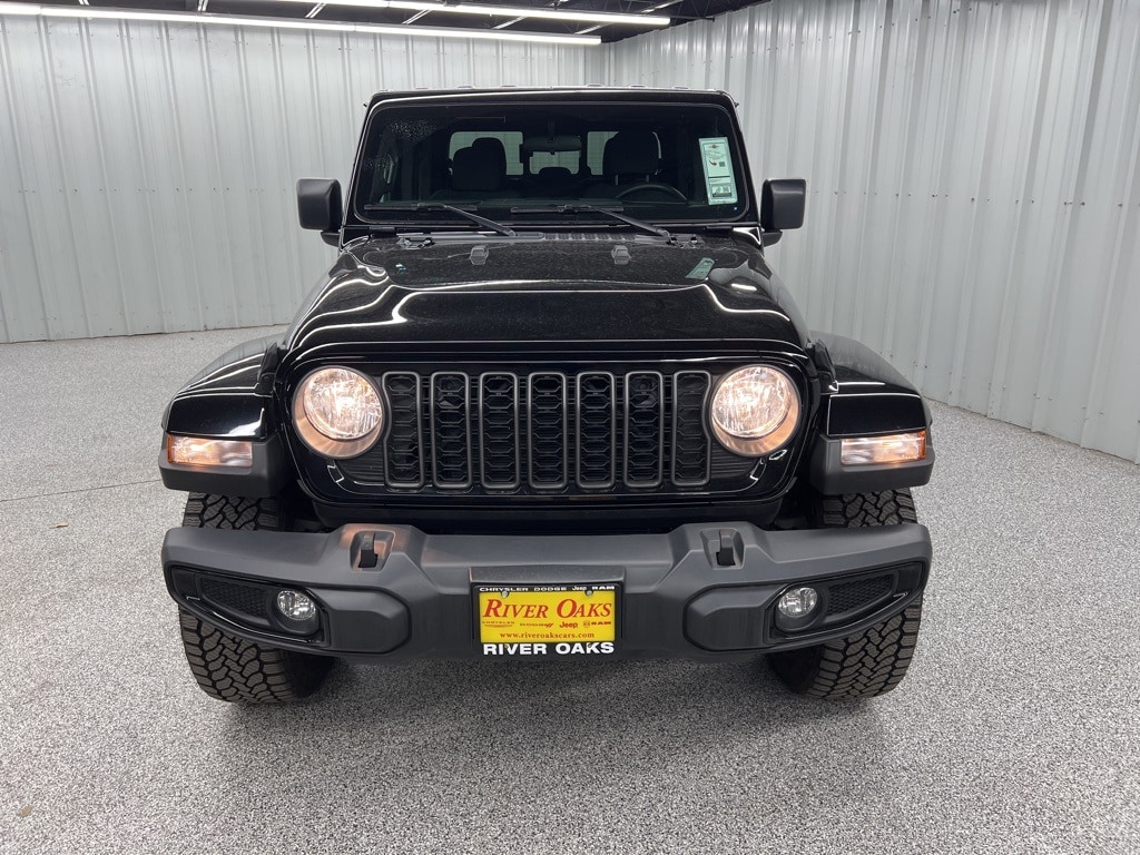 This 2025 Jeep Gladiator Nighthawk in Black Clearcoat comes with the following features: 3.6L V6 24V VVT 8-Speed Automatic 4WD Quick Order Package 24X Night Hawk (DISC) (110 MPH Vehicle Max Speed Calibration, Anti-Spin Differential Rear Axle, Body Color Fender Flares (2-Piece), Dana M210 Wide Front Axle, Dana M220 Wide Rear Axle, Daytime Running Lamp System, Deep Tint Sunscreen Windows, Mold In Color Bumper w/Gloss Black, Power Heated Mirrors, Protection Sill Rails, Sport Rear Shock Absorbers, Sport Suspension (DISC), and Wheels: 20" x 8" Painted Black Aluminum (DISC)), Trailer Tow & Aux Switch Group (Auxiliary Switches, Class IV Receiver Hitch, Heavy-Duty Engine Cooling, and Trailer Hitch Zoom), 12.3" Touchscreen Display, 3.73 Rear Axle Ratio, 4-Wheel Disc Brakes, 4G LTE Wi-Fi Hot Spot, 8 Speakers, ABS brakes, Air Conditioning, Alexa Built-In, AM/FM radio: SiriusXM, Apple CarPlay, Apple CarPlay/Android Auto, Brake assist, Cloth Low-Back Bucket Seats, Compass, Connectivity - US/Canada, Delay-off headlights, Driver door bin, Driver vanity mirror, Dual front impact airbags, Dual front side impact airbags, Electronic Stability Control, Front anti-roll bar, Front Bucket Seats, Front Center Armrest w/Storage, Front fog lights, Front License Plate Bracket, Front reading lights, Google Android Auto, Illuminated entry, Integrated roll-over protection, Low tire pressure warning, Normal Duty Suspension, Occupant sensing airbag, Outside temperature display, Overhead airbag, Panic alarm, ParkView Rear Back-Up Camera, Passenger door bin, Passenger vanity mirror, Power steering, Power windows, Radio data system, Radio: Uconnect 5 w/12.3" Display, Rear anti-roll bar, Rear reading lights, Remote keyless entry, Speed control, Split folding rear seat, Steering wheel mounted audio controls, Tachometer, Telescoping steering wheel, Tilt steering wheel, Traction control, Trip computer, USB Host Flip, Variably intermittent wipers, Voltmeter, and Wheels: 17" x 7.5" Black Steel Styled.