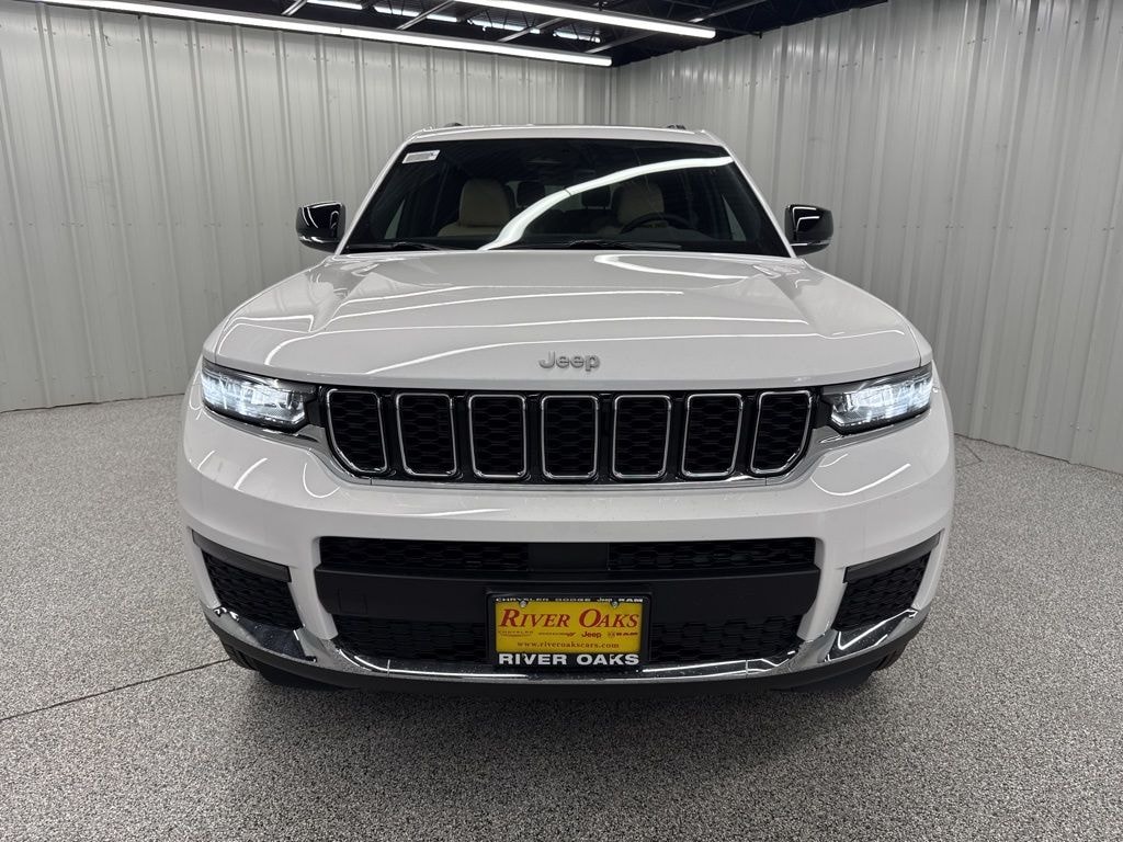 This 2025 Jeep Grand Cherokee L Limited in Bright White Clearcoat comes with the following features: 3.6L V6 24V VVT 8-Speed Automatic 4WD Quick Order Package 22E, 3.45 Rear Axle Ratio, 3rd row seats: split-bench, 4-Wheel Disc Brakes, 6 Speakers, ABS brakes, Active Noise Control System, Air Conditioning, Alloy wheels, AM/FM radio: SiriusXM with 360L, Anti-whiplash front head restraints, Audio memory, Auto High-beam Headlights, Automatic temperature control, Brake assist, Bumpers: body-color, Capri Leatherette Seats, Compass, Delay-off headlights, Driver door bin, Driver vanity mirror, Dual front impact airbags, Dual front side impact airbags, Dual-Pane Panoramic Sunroof, Electronic Stability Control, Emergency communication system, Four wheel independent suspension, Front anti-roll bar, Front Bucket Seats, Front Center Armrest w/Storage, Front dual zone A/C, Front fog lights, Front License Plate Bracket, Front reading lights, Fully automatic headlights, Garage door transmitter, Heated door mirrors, Heated front seats, Heated rear seats, Heated steering wheel, Illuminated entry, Interior Rear Facing Camera, Knee airbag, Low tire pressure warning, Manual Fold Seatbacks, Memory seat, Model Year Tracking, Navigation System, Normal Duty Suspension, Occupant sensing airbag, Outside temperature display, Overhead airbag, Overhead console, Panic alarm, ParkView Rear Back-Up Camera, Passenger door bin, Passenger vanity mirror, Power door mirrors, Power driver seat, Power Liftgate, Power passenger seat, Power steering, Power windows, Radio data system, Radio: Uconnect 5 Nav with 10.1" Display, Rear air conditioning, Rear anti-roll bar, Rear reading lights, Rear window defroster, Rear window wiper, Reclining 3rd row seat, Remote keyless entry, Security system, Speed control, Speed-Sensitive Wipers, Split folding rear seat, Spoiler, Steering wheel mounted audio controls, Tachometer, Telescoping steering wheel, Tilt steering wheel, Traction control, Trip computer, Turn signal indicator mirrors, Variably intermittent wipers, Voltmeter, and Wheels: 18" x 8.0" Polished/Painted Aluminum.