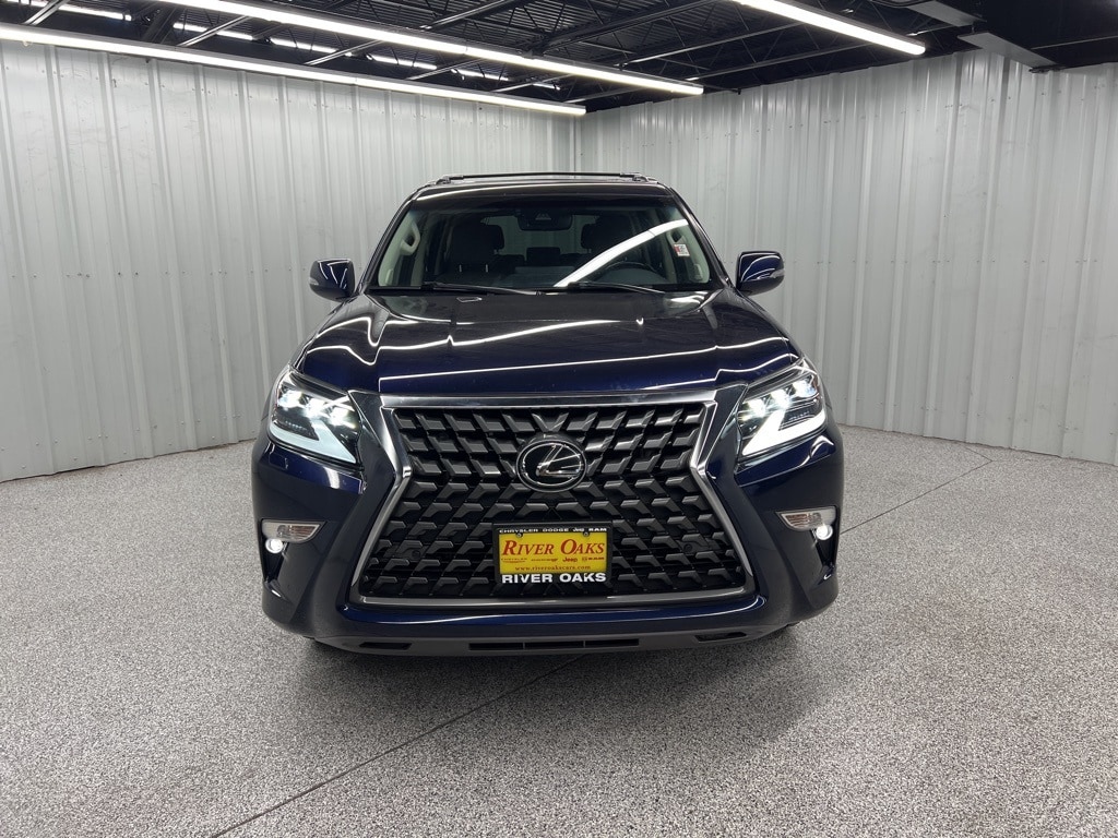 This 2023 Lexus GX 460 in Mica comes with the following features: 4.6L V8 DOHC Dual VVT-i 32V 6-Speed Automatic with Sequential Shift ECT 4WD Accessory Package (Alloy Wheel Locks, Cargo Net, Carpet Cargo Mat, and Key Gloves), Premium Plus Package (3rd Row Power Seats, Dual Front & Rear Auto Air Conditioner, Front & Rear Heated Seats, LED Front Fog & Driving Lamp, NuLuxe Seat Trim (EA), Safety Connect, Ventilated Front Seats, Windshield De-Icer, and Windshield Wiper Control w/Rain Sensor), 18" x 7.5J Aluminum Alloy Wheels, 3.909 Axle Ratio, 3rd row seats: split-bench, 4-Wheel Disc Brakes, 9 Speakers, ABS brakes, Air Conditioning, All Weather Floor Liners w/Cargo Mat, Alloy wheels, AM/FM radio: SiriusXM, Anti-whiplash front head restraints, Apple CarPlay/Android Auto, Auto High-beam Headlights, Auto tilt-away steering wheel, Auto-dimming Rear-View mirror, Automatic temperature control, Brake assist, Bumpers: body-color, Cargo-Area Tonneau Cover, CD player, Compass, Delay-off headlights, Door Edge Film by 3M, Driver door bin, Driver vanity mirror, Driver's Seat Mounted Armrest, Dual front impact airbags, Dual front side impact airbags, Electronic Stability Control, Emergency communication system: Safety Connect (3-year trial), Exhaust Tip, Exterior Parking Camera Rear, Front anti-roll bar, Front Bucket Seats, Front dual zone A/C, Front reading lights, Front wheel independent suspension, Fully automatic headlights, Garage door transmitter: HomeLink, Headlamp Washers, Heated door mirrors, Heated Wood & Leather Steering Wheel, Illuminated entry, Illuminated running boards, Knee airbag, Leather Shift Knob, Leather steering wheel, Low tire pressure warning, Memory seat, Navigation system: Lexus Enform Dynamic Navigation, NuLuxe Seat Trim, Occupant sensing airbag, Outside temperature display, Overhead airbag, Overhead console, Panic alarm, Passenger door bin, Passenger seat mounted armrest, Passenger vanity mirror, Power door mirrors, Power driver seat, Power moonroof, Power passenger seat, Power steering, Power windows, Quick Charge Cables-Mobile, Radio data system, Radio: Lexus Multimedia System w/Navigation, Rear anti-roll bar, Rear reading lights, Rear seat center armrest, Rear side impact airbag, Rear window defroster, Rear window wiper, Remote keyless entry, Roof Rack Cross Bars, Roof rack: rails only, Security system, Speed control, Speed-sensing steering, Split folding rear seat, Spoiler, Steering wheel memory, Steering wheel mounted audio controls, Tachometer, Telescoping steering wheel, Tilt steering wheel, Traction control, Trip computer, Turn signal indicator mirrors, Variably intermittent wipers, and Wheels: 18" x 7.5J Dark Gray Metallic Alum Alloy.