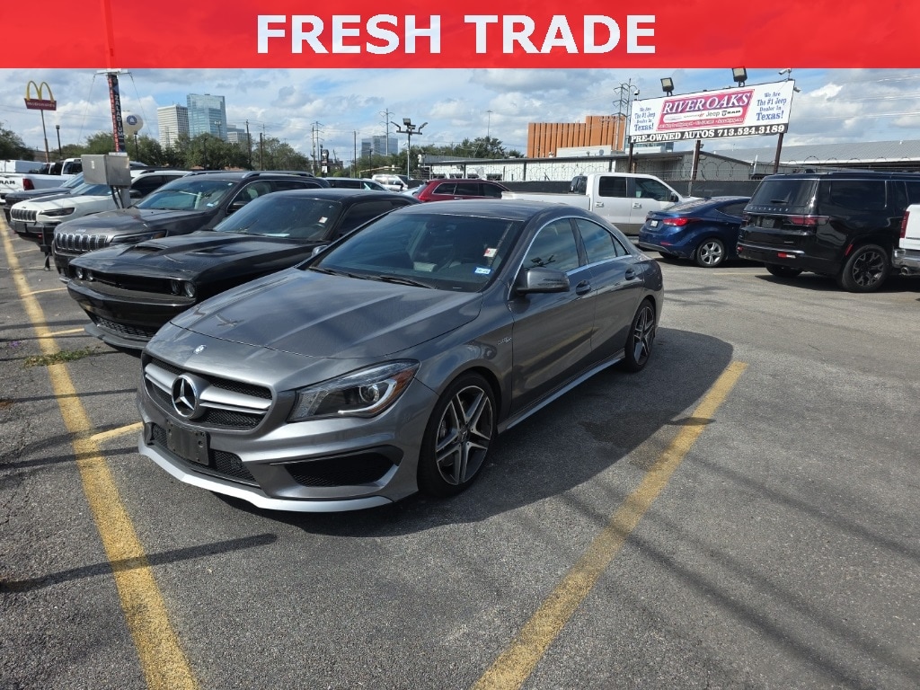 This 2014 Mercedes-Benz CLA CLA 45 AMG® 4MATIC® in Gray comes with the following features: 2.0L I4 Turbocharged 7-Speed Automatic 4MATIC® 18" Twin 5-Spoke Alloy Wheels, 4-Wheel Disc Brakes, 8 Speakers, ABS brakes, Air Conditioning, Alloy wheels, AM/FM radio, AM/FM/CD Player, Brake assist, Bumpers: body-color, CD player, Child-Seat-Sensing Airbag, Delay-off headlights, Driver door bin, Driver vanity mirror, Dual front impact airbags, Dual front side impact airbags, Electronic Stability Control, Emergency communication system, Four wheel independent suspension, Front anti-roll bar, Front Bucket Seats, Front Center Armrest, Front reading lights, Fully automatic headlights, Heated door mirrors, High intensity discharge headlights: Bi-Xenon, Illuminated entry, Knee airbag, Low tire pressure warning, MB-Tex Upholstery, Memory seat, Occupant sensing airbag, Outside temperature display, Overhead airbag, Overhead console, Panic alarm, Passenger door bin, Passenger vanity mirror, Power door mirrors, Power driver seat, Power passenger seat, Power steering, Power windows, Premium audio system: COMAND®, Radio data system, Rain sensing wipers, Rear anti-roll bar, Rear fog lights, Rear reading lights, Rear seat center armrest, Rear window defroster, Remote keyless entry, Security system, Speed control, Speed-sensing steering, Split folding rear seat, Steering wheel mounted audio controls, Tachometer, Telescoping steering wheel, Tilt steering wheel, Traction control, Trip computer, Turn signal indicator mirrors, Variably intermittent wipers, and Weather band radio.