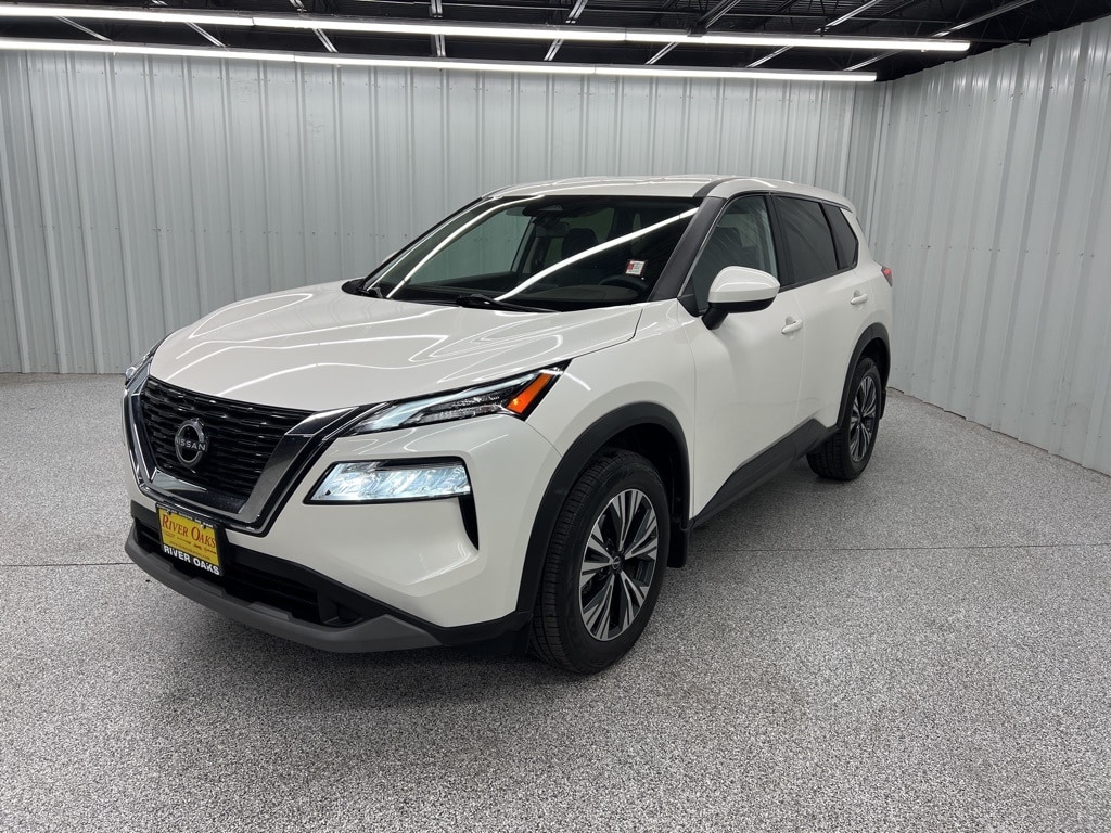This 2023 Nissan Rogue SV in Pearl White Tricoat comes with the following features: 1.5L I3 Turbocharged DOHC 12V LEV3-ULEV50 201hp CVT with Xtronic FWD 18" Aluminum Alloy Wheels, 4-Wheel Disc Brakes, 5.604 Axle Ratio, 6 Speakers, ABS brakes, Air Conditioning, Alloy wheels, AM/FM Radio, AM/FM radio: SiriusXM, Auto High-beam Headlights, Automatic temperature control, Black Splash Guards (Set of 4), Brake assist, Bumpers: body-color, Cloth Seat Trim, Delay-off headlights, Driver door bin, Driver vanity mirror, Dual front impact airbags, Dual front side impact airbags, Electronic Stability Control, Emergency communication system: NissanConnect Services, Floor Mats w/1-Piece Cargo Area Protector, Four wheel independent suspension, Front anti-roll bar, Front Bucket Seats, Front Center Armrest, Front dual zone A/C, Front reading lights, Fully automatic headlights, Heated door mirrors, Illuminated entry, Knee airbag, Low tire pressure warning, NissanConnect featuring Apple CarPlay and Android Auto, Occupant sensing airbag, Outside temperature display, Overhead airbag, Overhead console, Panic alarm, Passenger door bin, Passenger vanity mirror, Power door mirrors, Power driver seat, Power steering, Power windows, Radio data system, Rear anti-roll bar, Rear Parking Sensors, Rear seat center armrest, Rear side impact airbag, Rear window defroster, Rear window wiper, Remote keyless entry, Speed control, Speed-Sensitive Wipers, Split folding rear seat, Spoiler, Steering wheel mounted audio controls, Tachometer, Telescoping steering wheel, Tilt steering wheel, Traction control, Trip computer, and Variably intermittent wipers.