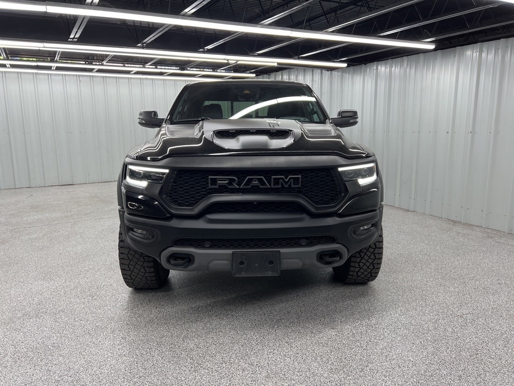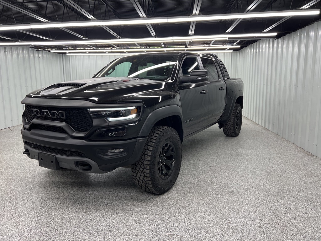 This 2023 Ram 1500 TRX in Diamond Black Crystal Pearlcoat comes with the following features: 6.2L Supercharged HEMI V8 SRT 8-Speed Automatic 4WD Advanced Safety Group (Adaptive Cruise Control w/Stop & Go, Lane Keep Assist, Pedestrian Emergency Braking, and Tailgate Ajar Warning Lamp), Quick Order Package 29Y, Trailer Tow Group (Trailer Light Check and Trailer Tire Pressure Monitoring System), TRX Carbon Fiber Package (Leather/Carbon Flat-Bottom Steering Wheel and Real Carbon Fiber Interior Accents), TRX Level 2 Equipment Group (#2 Seat Foam Cushion, 2-Door Passive Entry, Front Door Locks, 4 Way Front Headrests, Accent Color Door Handles, Blind Spot & Cross Path Detection, Bucket Seats, Center Console Parts Module, Digital Rearview Mirror, Driver Seat Memory, Driver/Passenger Wrapped Assist Handles, Exterior Mirrors w/Memory, Front Door Accent Lighting, Front Seat Back Map Pockets, Full Length Premium Upgraded Floor Console, Heads-Up Display, Heated Front Seats, Heated Second Row Seats, Heated Steering Wheel, IP LED Ambient Light Pipe, Leather Trimmed Bucket Seats, Leather/Suede Flat-Bottom Steering Wheel, LED CHMSL Lamp, Luxury Front Door Trim Panel, MOPAR Bright Pedal Kit, ParkSense Front/Rear Park Assist w/Stop, Pick-Up Box Lighting, Power 4-Way Driver Lumbar Adjust, Power 4-Way Passenger Lumbar Adjust, Power 8-Way Driver & Passenger Seats, Power Adjustable Pedals w/Memory, Premium Wrapped IP Bezel, Radio/Driver Seat/Mirrors/Pedals Memory, Rain Sensitive Windshield Wipers, Rear 60/40 Folding Seat, Rear 60/40 Folding Split Recline Seat, Rear Door Accent Lighting, Rear Underseat Compartment Storage, Rear Window Defroster, Remote Tailgate Release, Sun Visors w/Illuminated Vanity Mirrors, Surround View Camera System, Trailer Brake Control, Universal Garage Door Opener, Ventilated Front Seats, Ventilated Rear Seats, and Wireless Charging Pad), 10 Speakers, 3.55 Rear Axle Ratio, 4-Wheel Disc Brakes, ABS brakes, Adaptive suspension, Air Conditioning, Alloy wheels, AM/FM radio: SiriusXM with 360L, Apple CarPlay/Android Auto, Auto High-beam Headlights, Auto-dimming door mirrors, Auto-dimming Rear-View mirror, Automatic temperature control, Black Exterior Mirrors, Brake assist, Cloth/Vinyl Bucket Seats, Compass, Delay-off headlights, Dome Dual LED Reading Lamp, Driver door bin, Dual front impact airbags, Dual front side impact airbags, Dual-Pane Panoramic Sunroof, Electronic Stability Control, Engine Block Heater, Exterior Mirrors Courtesy Lamps, Exterior Mirrors w/Heating Element, Exterior Mirrors w/Supplemental Signals, Front anti-roll bar, Front Bucket Seats, Front Center Armrest w/Storage, Front dual zone A/C, Front fog lights, Front License Plate Bracket, Front reading lights, Front wheel independent suspension, Fully automatic headlights, harman/kardon 19 Speaker Premium Sound (DISC), Heated door mirrors, Illuminated entry, Leather Shift Knob, Leather steering wheel, Low tire pressure warning, Manufacturer's Statement of Origin, MOPAR Rock Rails, MOPAR TRX Hood Graphics, Navigation System, Occupant sensing airbag, Outside temperature display, Overhead airbag, Overhead console, Panic alarm, ParkView Rear Back-Up Camera, Passenger door bin, Passenger vanity mirror, Power door mirrors, Power driver seat, Power steering, Power windows, Power-Folding Mirrors, Radio data system, Radio: Uconnect 5 Nav w/12.0" Display, Rear seat center armrest, Rear step bumper, Remote keyless entry, Security system, Speed control, Split folding rear seat, Sport steering wheel, Steering wheel mounted audio controls, Tachometer, Telescoping steering wheel, Tilt steering wheel, Traction control, Tri-Fold Tonneau Cover, Trip computer, TRX Red Interior Accents, Turn signal indicator mirrors, Variably intermittent wipers, Voltmeter, and Wheels: 18" x 9" Black Paint/Polish Aluminum.
