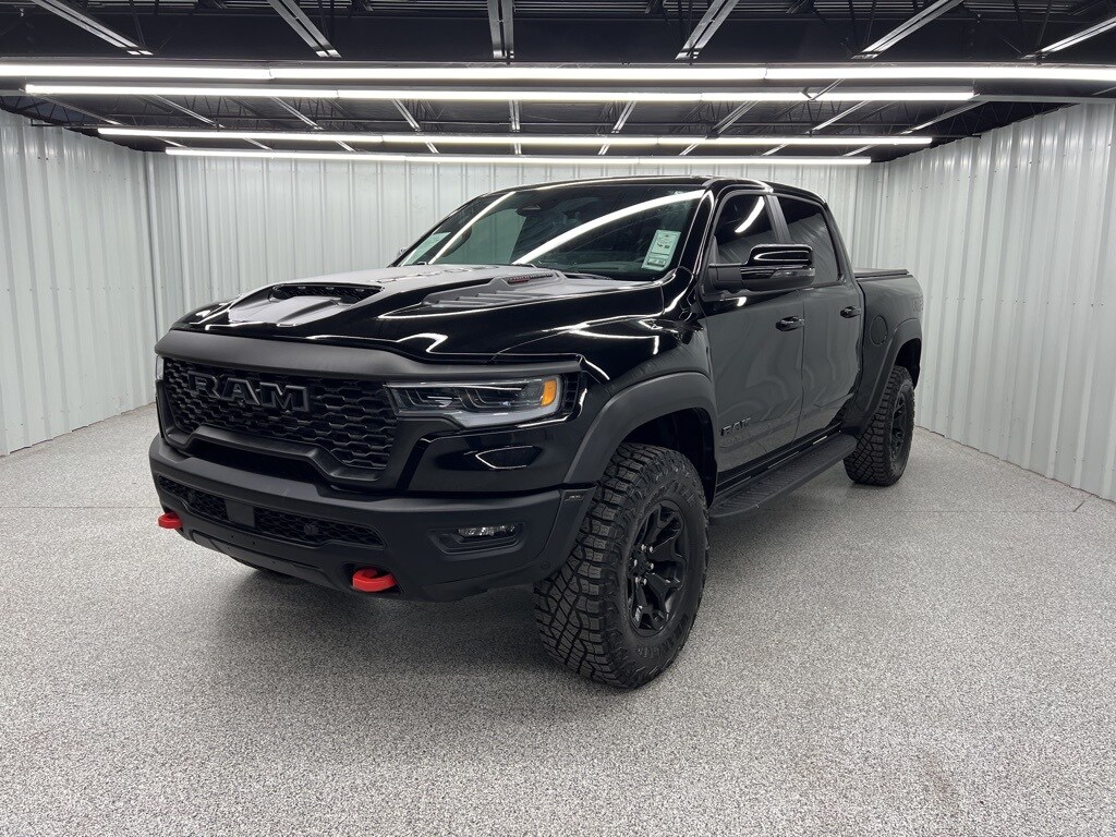 This 2025 Ram 1500 RHO in Diamond Black Crystal Pearlcoat comes with the following features: 3.0L I6 8-Speed Automatic 4WD Bed Utility Group (Exterior 115V AC Outlet, MOPAR 4 Adjustable Cargo Tie-Down Hooks, MOPAR Deployable Bed Step, and MOPAR Spray In Bedliner), Quick Order Package 22Y RHO, RHO Level 1 Equipment Group (12-Way/1-Way Trailer Connector, 14.4" Touchscreen Display, 240 Amp Alternator, 4G LTE Wi-Fi Hot Spot, Apple CarPlay, Connected Travel & Traffic Services, Connectivity - US/Canada, Driver Power Seat Back Massage, Driver Seat Memory, Driver/Passenger Wrapped Assist Handles, Drowsy Driver Detection, Dual Wireless Charging Pad, Evasive Steer Assist, Exterior Mirrors w/Memory, Front Passenger Interactive Display, Front Passenger Power Seat Back Massage, Full Length Premium Upgraded Floor Console, Google Android Auto, GPS Navigation, Hands-Free Active Driving Assist System, harman/kardon 19 Speaker Premium Sound, HD Radio, Heads-Up Display, Heated Second Row Seats, Integrated Voice Command w/Bluetooth, Intersection Collision Assist System, Leather/Carbon Flat-Bottom Steering Wheel, LED CHMSL Lamp, Luxury Front Door Trim Panel, Power Adjustable Pedals w/Memory, Power Tailgate, Premium Wrapped I/P Bezel, Radio: Uconnect 5 Nav w/14.4" Display, Radio/Driver Seat/Mirrors/Pedals Memory, Rain Sensitive Windshield Wipers, Real Carbon Fiber Interior Accents, Rear 60/40 Folding Split Recline Seat, Smartphone As A Key Capable, Surround View Camera System, Traffic Sign Recognition, USB Host Flip, Ventilated Front Seats, and Ventilated Rear Seats), 10 Speakers, 3.92 Rear Axle Ratio, 4-Wheel Disc Brakes, ABS brakes, Adaptive suspension, Adjustable pedals, Air Conditioning, Alloy wheels, AM/FM radio: SiriusXM with 360L, Apple CarPlay/Android Auto, Auto High-beam Headlights, Auto Power-Folding Mirrors, Auto-dimming door mirrors, Auto-Dimming Exterior Driver Mirror, Auto-dimming Rear-View mirror, Automatic temperature control, Brake assist, Compass, Delay-off headlights, Dome Dual LED Reading Lamp, Driver door bin, Driver vanity mirror, Dual front impact airbags, Dual front side impact airbags, Dual-Pane Panoramic Sunroof, Electronic Stability Control, Exterior Mirrors Courtesy Lamps, Exterior Mirrors w/Heating Element, Exterior Mirrors w/Supplemental Signals, Flareside Box, Front anti-roll bar, Front Bucket Seats, Front Center Armrest w/Storage, Front dual zone A/C, Front fog lights, Front License Plate Bracket, Front reading lights, Front wheel independent suspension, Fully automatic headlights, Garage door transmitter, Heated door mirrors, Heated front seats, Heated steering wheel, Illuminated entry, Leather Shift Knob, Leather steering wheel, Leather Trimmed Bucket Seats, Low tire pressure warning, MOPAR Off-Road Style Running Boards, Navigation System, Occupant sensing airbag, Outside temperature display, Overhead airbag, Overhead console, Panic alarm, ParkView Rear Back-Up Camera, Passenger door bin, Passenger vanity mirror, Power door mirrors, Power driver seat, Power passenger seat, Power steering, Power windows, Radio data system, Radio: Uconnect 5 Nav w/12.0" Display, Rear reading lights, Rear seat center armrest, Rear step bumper, Rear window defroster, Remote keyless entry, Security system, Speed control, Split folding rear seat, Sport steering wheel, Steering wheel mounted audio controls, Tachometer, Telescoping steering wheel, Tilt steering wheel, Traction control, Tri-Fold Tonneau Cover, Trip computer, Turn signal indicator mirrors, Variably intermittent wipers, Voltmeter, and Wheels: 18" x 9" Black Paint/Polish Aluminum.