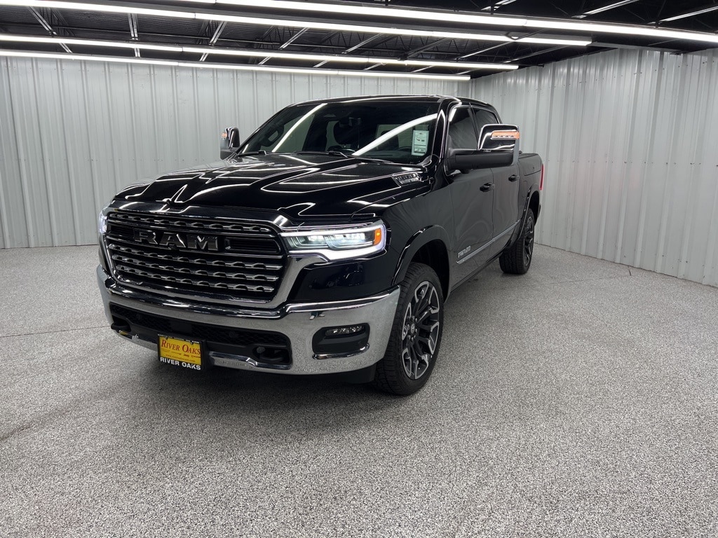 This 2025 Ram 1500 Limited in Diamond Black Crystal Pearlcoat comes with the following features: 3.0L I6 8-Speed Automatic 4WD Limited Level An Equipment Group (12-Way/1-Way Trailer Connector, 14.4" Touchscreen Display, 240 Amp Alternator, 4G LTE Wi-Fi Hot Spot, Apple CarPlay, Connected Travel & Traffic Services, Connectivity - US/Canada, Disassociated Touchscreen Display, Drowsy Driver Detection, Evasive Steer Assist, For Details, Visit DriveUconnect.com, Google Android Auto, GPS Antenna Input, GPS Navigation, Hands-Free Active Driving Assist System, HD Radio, Heads-Up Display, Integrated Voice Command w/Bluetooth, Intersection Collision Assist System, LED CHMSL Lamp, Radio: Uconnect 5 Nav w/14.4" Display, SiriusXM w/360L, Smartphone As A Key Capable, Surround View Camera System, Traffic Sign Recognition, Tri-Fold Tonneau Cover, and USB Host Flip), Off Road Group (E-Locker Rear Axle, Falken Brand Tires, Front Extra HD Shock Absorbers, Off Road Decals, Raised Ride Height, Rear Extra HD Shock Absorbers, and Selec-Speed Control), Quick Order Package 22M Limited, Towing Technology Group (Trailer Hitch Line-Up Assist), Trailer Tow Group (Trailer Brake Control, Trailer Reverse Steering Control, and Trailer Tire Pressure Monitoring System), 19 Speakers, 3.92 Rear Axle Ratio, 4-Wheel Disc Brakes, ABS brakes, Adjustable pedals, Air Conditioning, Alloy wheels, AM/FM radio: SiriusXM with 360L, Apple CarPlay/Android Auto, Audio memory, Auto High-beam Headlights, Auto Power-Folding Mirrors, Auto-dimming door mirrors, Auto-Dimming Exterior Driver Mirror, Auto-Dimming Exterior Passenger Mirror, Auto-dimming Rear-View mirror, Auto-leveling suspension, Automatic temperature control, Bodyside moldings, Brake assist, Bumpers: chrome, Chrome Exterior Mirrors, Chrome Power-Fold Trailer Tow Mirrors, Compass, Convex Wide-Angle Exterior Mirror Insert, Delay-off headlights, Dome Dual LED Reading Lamp, Driver door bin, Driver vanity mirror, Dual front impact airbags, Dual front side impact airbags, Dual-Pane Panoramic Sunroof, Electronic Stability Control, Exterior 115V AC Outlet, Exterior Mirrors Courtesy Lamps, Exterior Mirrors w/Heating Element, Exterior Mirrors w/Memory, Exterior Mirrors w/Supplemental Signals, Forward & Reverse Utility Lights, Front anti-roll bar, Front Bucket Seats, Front Center Armrest w/Storage, Front dual zone A/C, Front fog lights, Front License Plate Bracket, Front reading lights, Front wheel independent suspension, Fully automatic headlights, Garage door transmitter, Genuine wood console insert, Genuine wood dashboard insert, Genuine wood door panel insert, harman/kardon® Speakers, Heated door mirrors, Heated front seats, Heated rear seats, Heated steering wheel, Illuminated entry, Leather steering wheel, LED Dome/Reading Lamp, Low tire pressure warning, Memory seat, Mirror Clearance/Running Lights, Multi-Function Tailgate, Navigation System, Occupant sensing airbag, Outside temperature display, Overhead airbag, Overhead console, Panic alarm, ParkView Rear Back-Up Camera, Passenger door bin, Passenger vanity mirror, Pedal memory, Pirelli Brand Tires, Power door mirrors, Power driver seat, Power passenger seat, Power steering, Power Telescoping Mirrors, Power windows, Power-Adjustable Convex Aux Mirrors, Premium Quilted Leather Bucket Seats, Radio data system, Radio: Uconnect 5 Nav w/12.0" Display, Rain sensing wipers, RAM's Head Badge, Rear anti-roll bar, Rear reading lights, Rear seat center armrest, Rear step bumper, Rear window defroster, Remote keyless entry, Remote Tailgate Release, Security system, Speed control, Split folding rear seat, Steering wheel mounted audio controls, Tachometer, Telescoping steering wheel, Tilt steering wheel, Traction control, Trailer Tow Mirrors, Trip computer, Turn signal indicator mirrors, Variably intermittent wipers, Ventilated front seats, Ventilated rear seats, Voltmeter, Wheels: 20" x 9" Premium Paint/Polished, and Wheels: 22" x 9