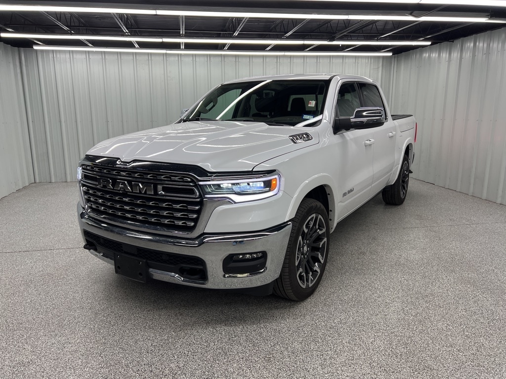 This 2025 Ram 1500 Limited in Ivory White Tri-Coat Pearlcoat comes with the following features: 3.0L I6 8-Speed Automatic 4WD Bed Utility Group (MOPAR 4 Adjustable Cargo Tie-Down Hooks and Truck Bed Cargo Divider), Limited Level An Equipment Group (12-Way/1-Way Trailer Connector, 14.4" Touchscreen Display, 240 Amp Alternator, 4G LTE Wi-Fi Hot Spot, Apple CarPlay, Connected Travel & Traffic Services, Connectivity - US/Canada, Disassociated Touchscreen Display, Drowsy Driver Detection, Evasive Steer Assist, For Details, Visit DriveUconnect.com, Google Android Auto, GPS Antenna Input, GPS Navigation, Hands-Free Active Driving Assist System, HD Radio, Heads-Up Display, Integrated Voice Command w/Bluetooth, Intersection Collision Assist System, LED CHMSL Lamp, Radio: Uconnect 5 Nav w/14.4" Display, SiriusXM w/360L, Smartphone As A Key Capable, Surround View Camera System, Traffic Sign Recognition, Tri-Fold Tonneau Cover, and USB Host Flip), Quick Order Package 22K Longhorn (Grille Surround 4 Chrome Texture 5 Chrome, Longhorn Badge, Longhorn Instrument Cluster Theme 3, Premium Door Trim Panel, Premium Filigree Leather Seats, and Warm Chrome Key Fob), Trailer Tow Group (Trailer Brake Control, Trailer Reverse Steering Control, and Trailer Tire Pressure Monitoring System), 19 Speakers, 3.92 Rear Axle Ratio, 4-Wheel Disc Brakes, ABS brakes, Adjustable pedals, Air Conditioning, Alloy wheels, AM/FM radio: SiriusXM with 360L, Apple CarPlay/Android Auto, Audio memory, Auto High-beam Headlights, Auto Power-Folding Mirrors, Auto-dimming door mirrors, Auto-Dimming Exterior Driver Mirror, Auto-dimming Rear-View mirror, Auto-leveling suspension, Automatic temperature control, Bodyside moldings, Brake assist, Bumpers: chrome, Chrome Exterior Mirrors, Compass, Convex Wide-Angle Exterior Mirror Insert, Delay-off headlights, Dome Dual LED Reading Lamp, Driver door bin, Driver vanity mirror, Dual front impact airbags, Dual front side impact airbags, Dual-Pane Panoramic Sunroof, Electronic Stability Control, Exterior 115V AC Outlet, Exterior Mirrors Courtesy Lamps, Exterior Mirrors w/Heating Element, Exterior Mirrors w/Memory, Exterior Mirrors w/Supplemental Signals, Front anti-roll bar, Front Bucket Seats, Front Center Armrest w/Storage, Front dual zone A/C, Front fog lights, Front License Plate Bracket, Front reading lights, Front wheel independent suspension, Fully automatic headlights, Garage door transmitter, Genuine wood console insert, Genuine wood dashboard insert, Genuine wood door panel insert, harman/kardon® Speakers, Heated door mirrors, Heated front seats, Heated rear seats, Heated steering wheel, Illuminated entry, Leather steering wheel, LED Dome/Reading Lamp, Low tire pressure warning, Memory seat, Navigation System, Occupant sensing airbag, Outside temperature display, Overhead airbag, Overhead console, Panic alarm, ParkView Rear Back-Up Camera, Passenger door bin, Passenger vanity mirror, Pedal memory, Pirelli Brand Tires, Power door mirrors, Power driver seat, Power passenger seat, Power steering, Power windows, Premium Quilted Leather Bucket Seats, Radio data system, Radio: Uconnect 5 Nav w/12.0" Display, Rain sensing wipers, Rear anti-roll bar, Rear reading lights, Rear seat center armrest, Rear step bumper, Rear window defroster, Remote keyless entry, Security system, Speed control, Split folding rear seat, Steering wheel mounted audio controls, Tachometer, Telescoping steering wheel, Tilt steering wheel, Traction control, Trip computer, Turn signal indicator mirrors, Variably intermittent wipers, Ventilated front seats, Ventilated rear seats, Voltmeter, Wheels: 20" x 9" Premium Paint/Polished, and Wheels: 22" x 9" Premium Paint/PolisheD.