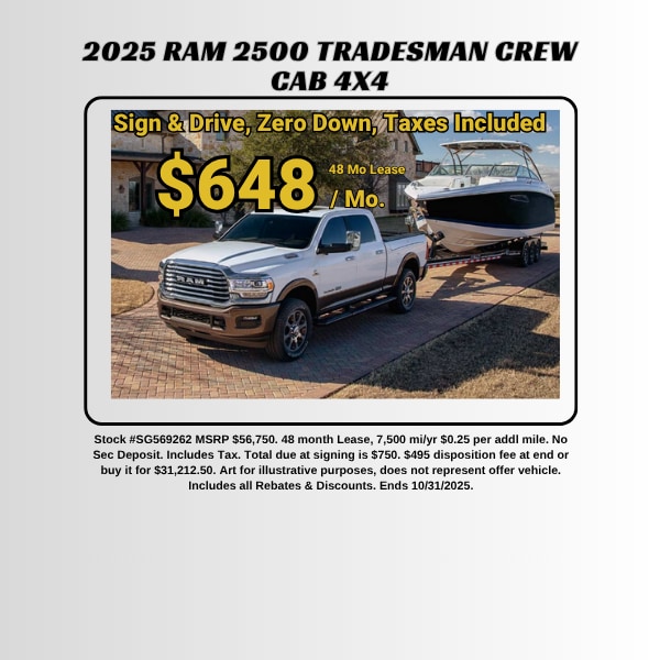 Look, we get it. Budgets are stretched and the last thing you want to worry about is how much to put down to get that car payment down to an affordable level. We have put together some really amazing deals on New vehicles, and all are calculated with Zero Down. These are 36 to 48 month leases and you don't have to put anything down!! Most dealers in Houston and all over Texas are asking for $X,XXX down and, then, you have to pay the sales tax upfront also. That's thousands of dollars upfront to get a vehicle. Not with us, it's zero down and the sales tax is in the payment. All you have to pay is the 1st payment, which is due at signing on a lease and the fees for title/plates/reg/docs (which is a couple of hundred bucks or so). So, if you are in Houston, Sugarland, Baytown, Bellaire, Katy, or any other area come see us. We've been in business for over 70 years and we love taking care of our customers like family. UPDATE::: ***Don't Wait Until The End Of The Month! Tax Credits Run Out Fast. When they run out, the Taxes Included program ends and you will have to pay sales tax to keep the payment listed. Early part of the month is the only time these will be available. Thank You.